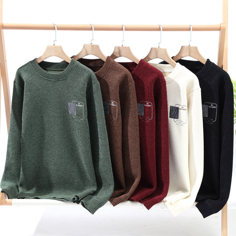 一体绒圆领卫衣男生秋冬季加绒加厚青少年初中高中学生针织打底衫