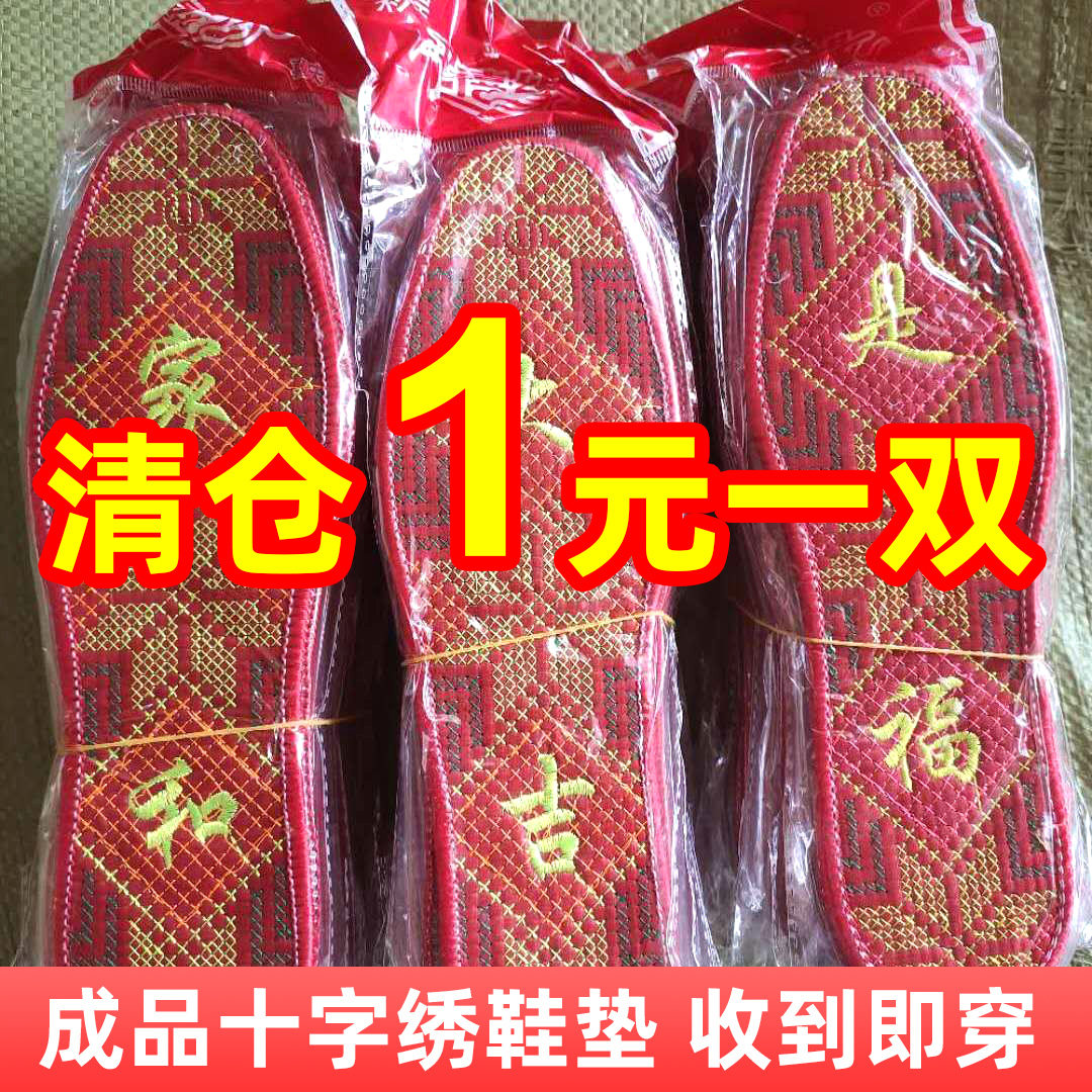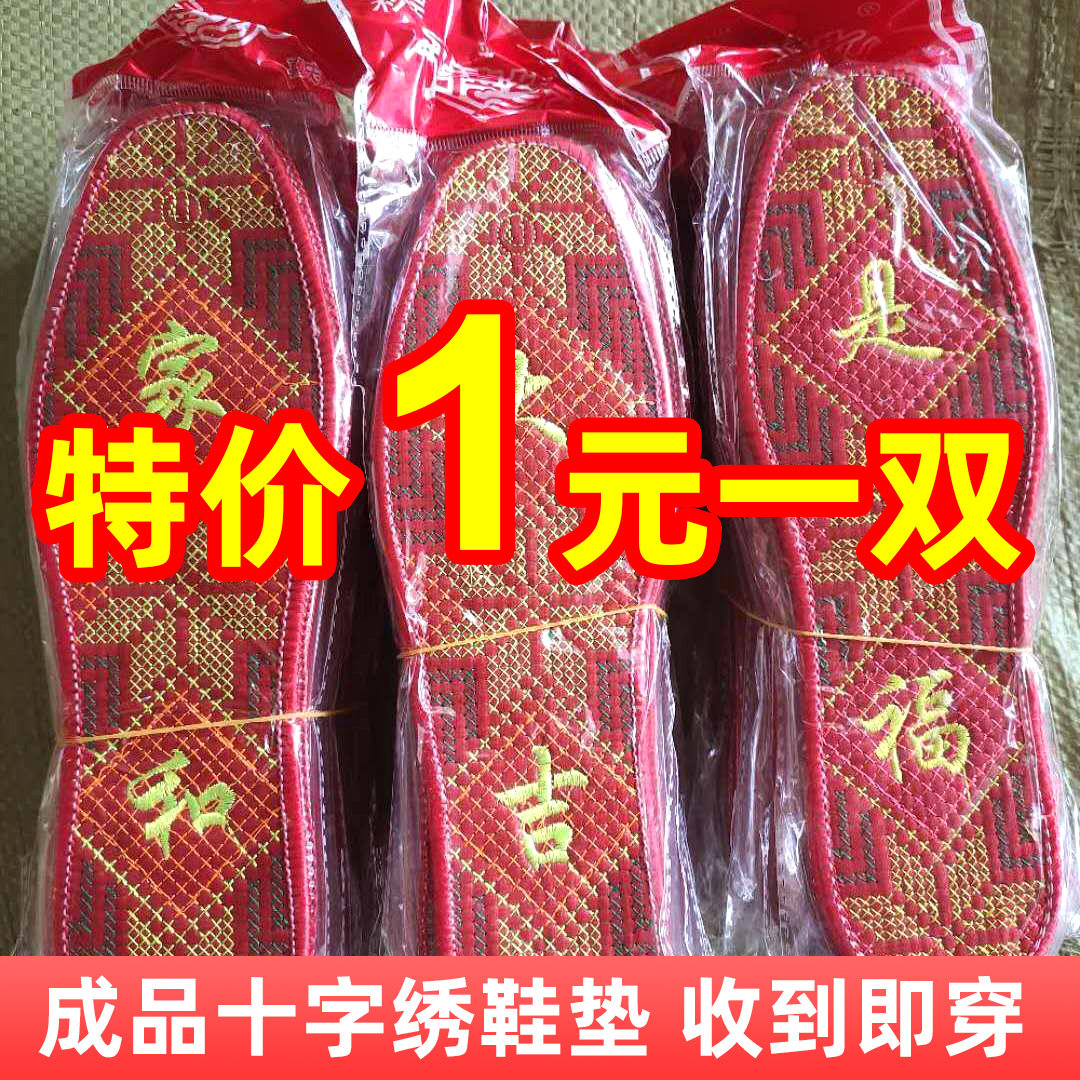 2023新款成品十字绣鞋垫精品简单简易纯棉布带字革绣花文字男女底