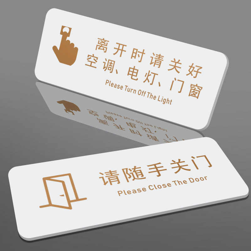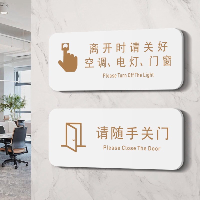 亚克力请随手关门关灯节约用电用水指示标识牌子离开时关好空调电灯门窗温馨提示贴公司部门标示家用牌墙贴纸