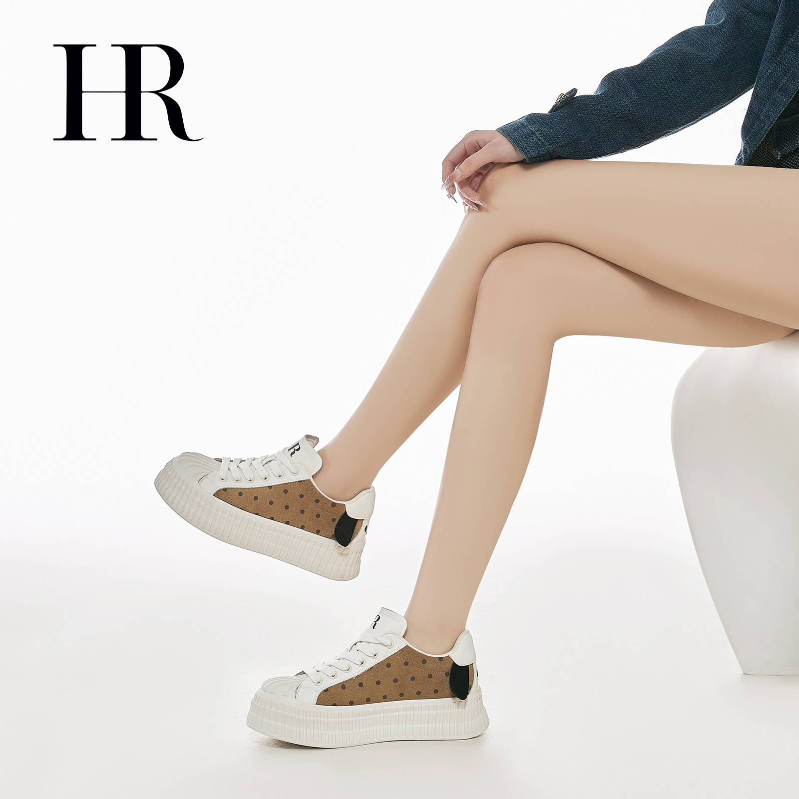 HR赫莲娜可爱斑点狗板鞋2026春季新款女鞋子厚底增高配裙子休闲潮