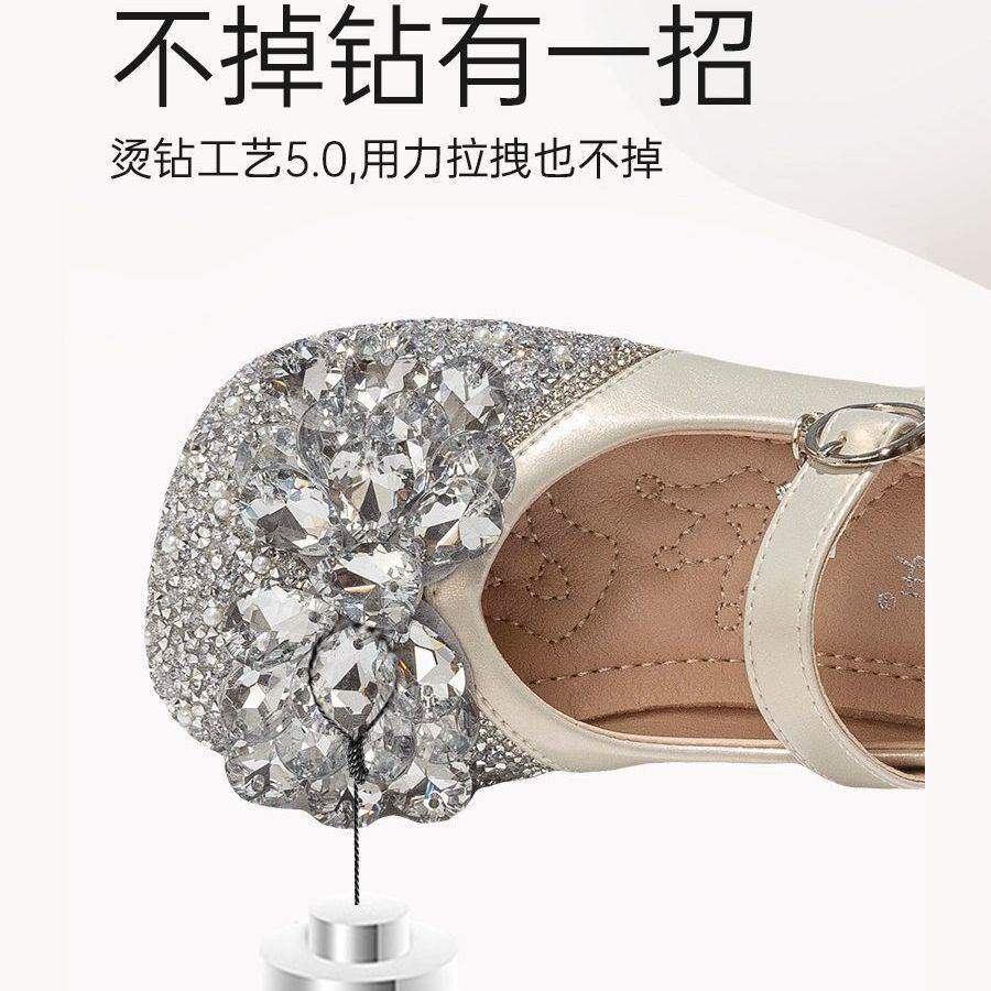 真皮女童鞋儿童艾莎公主鞋2026新款夏秋季软底单鞋银色水晶小皮鞋