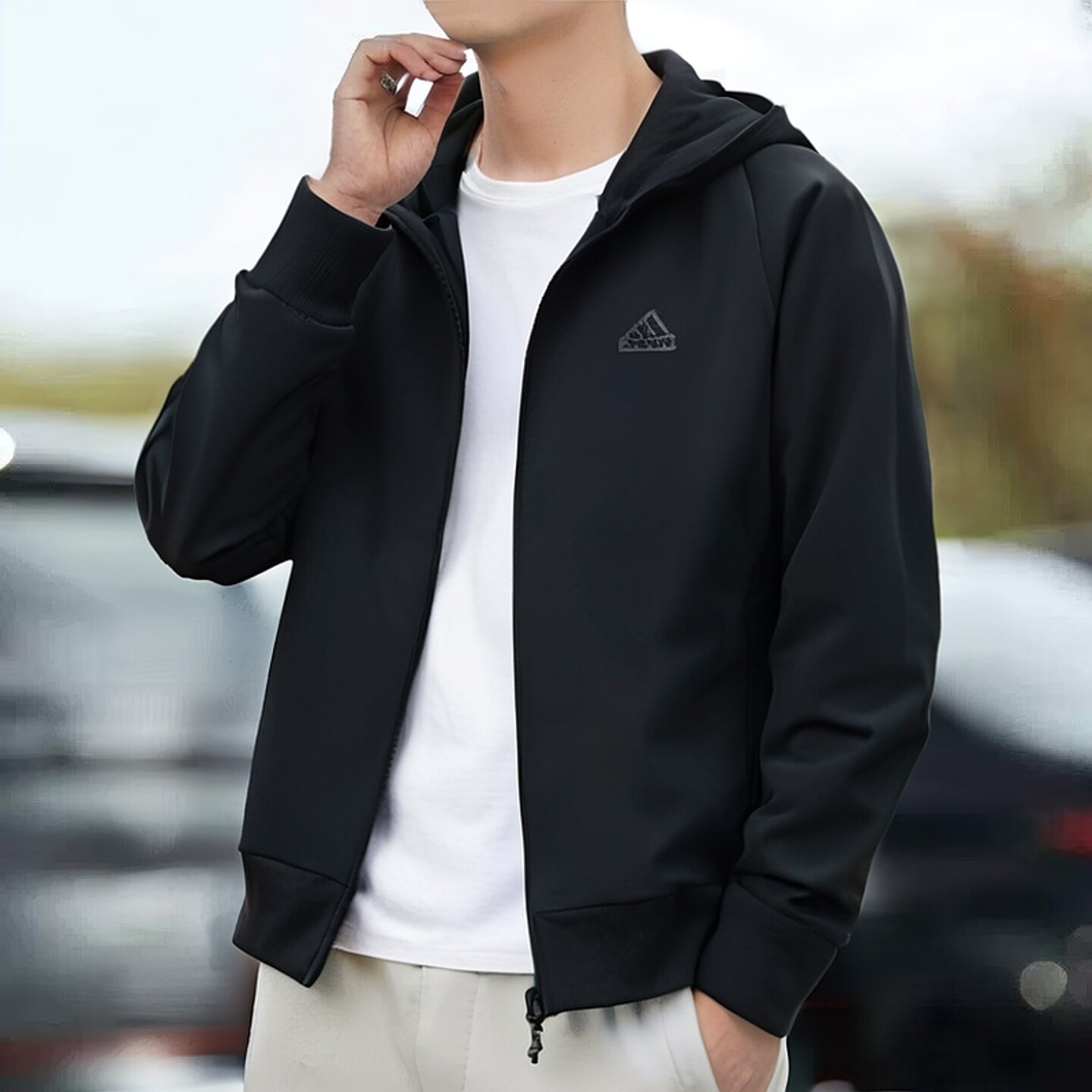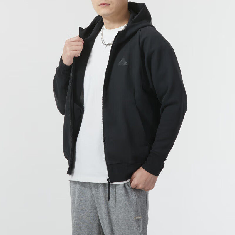 阿迪达斯棉质卫衣宽松春秋休闲运动外套新款连帽拉链针织户外开衫
