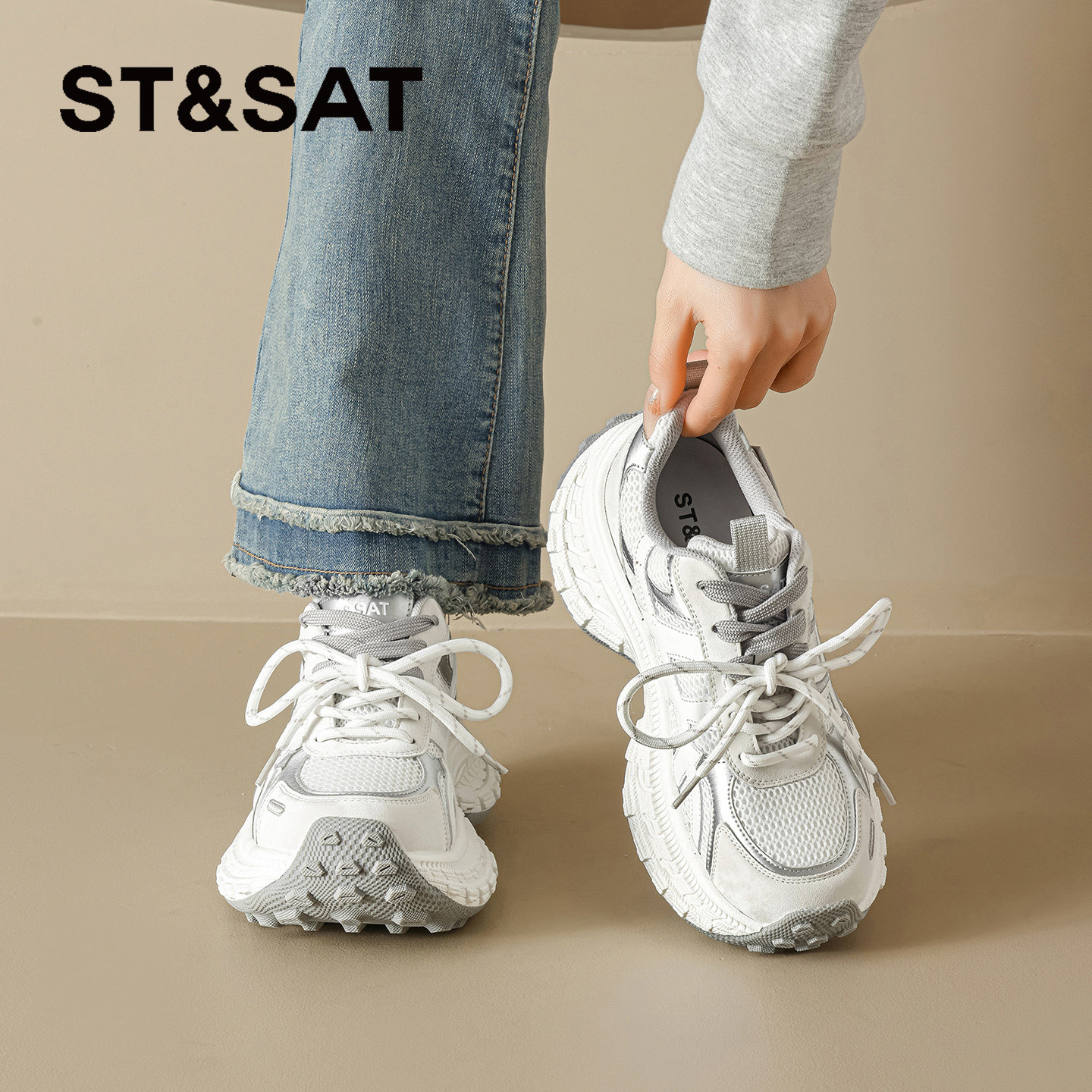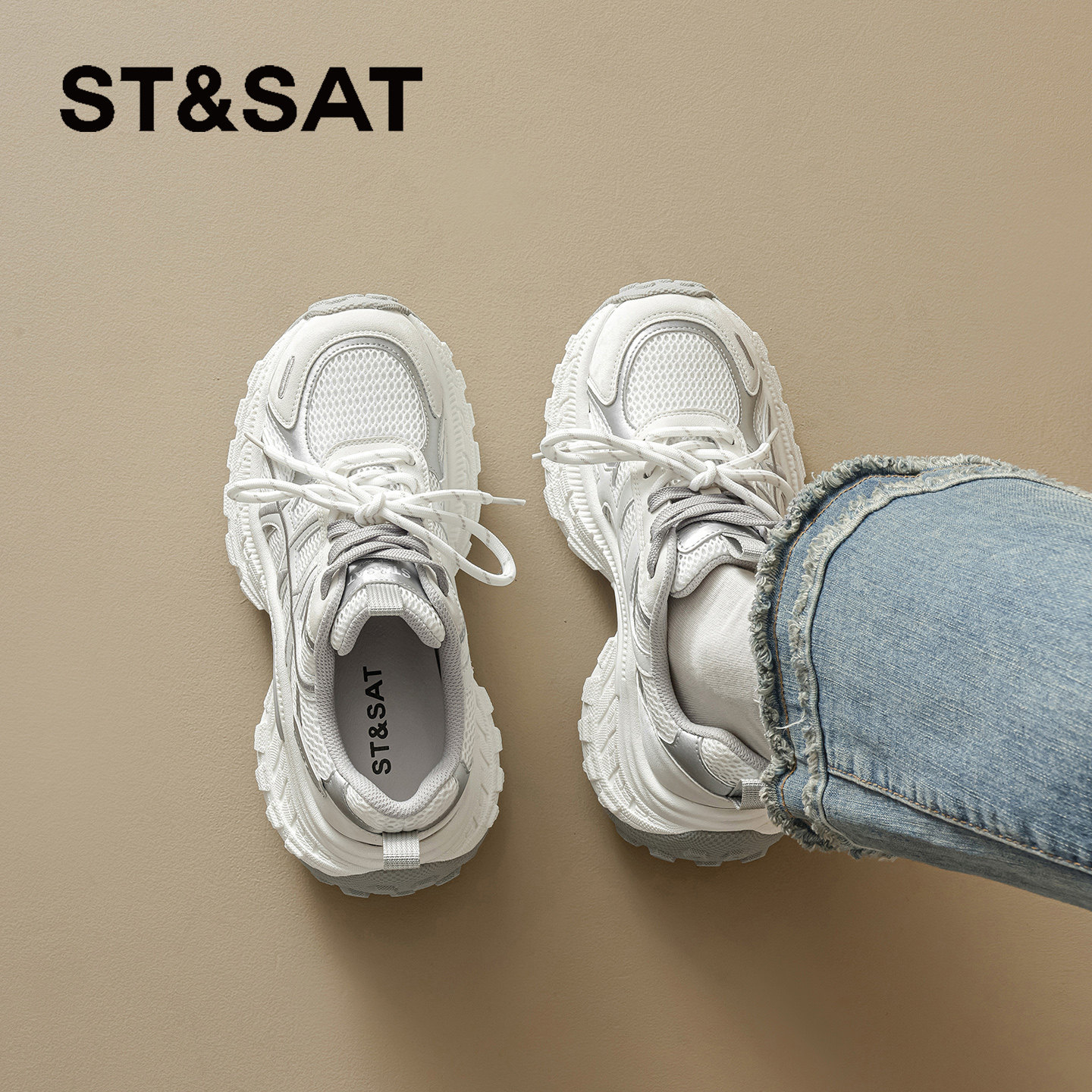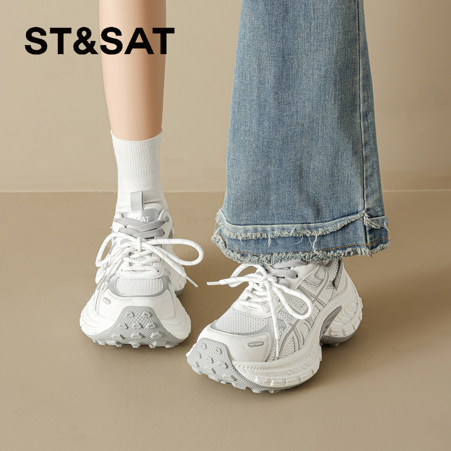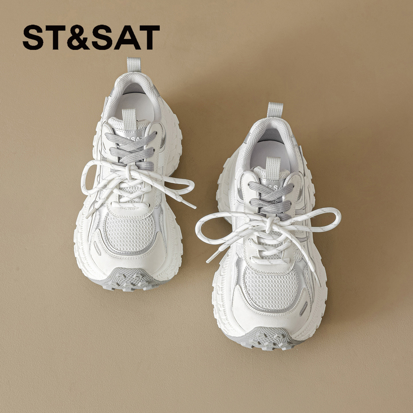星期六厚底老爹鞋女款白色2026夏季新款增高透气运动鞋时尚休闲鞋