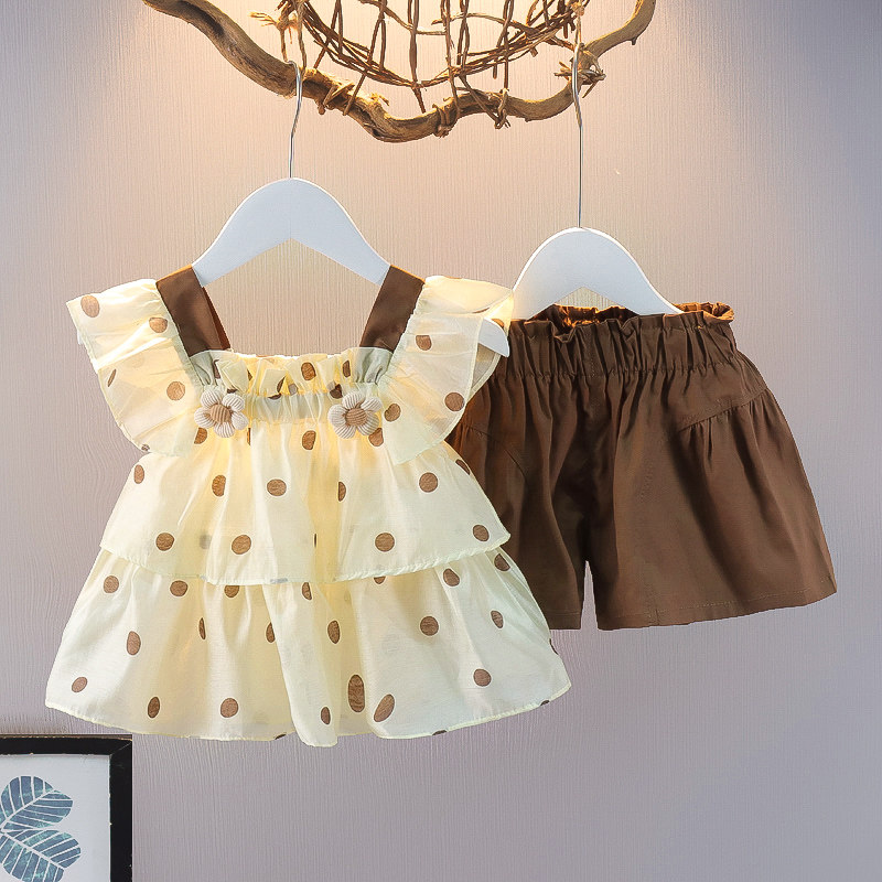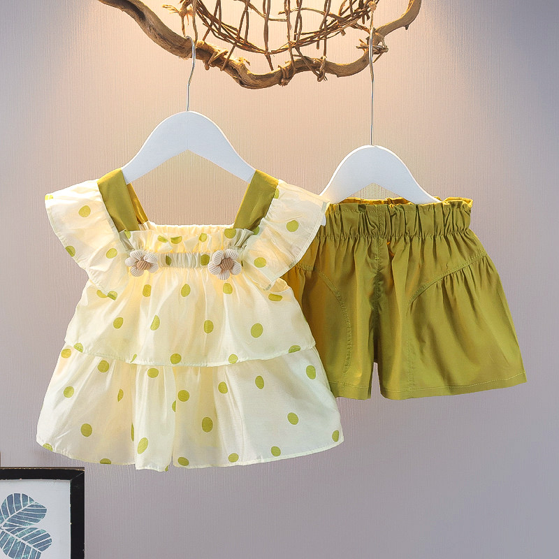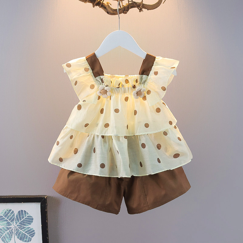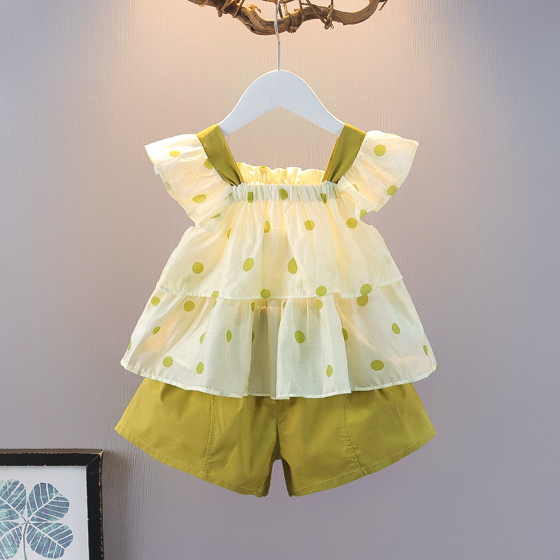 女童两件套装夏季新款洋气雪纺薄网红时髦公主潮3女宝宝无袖短裤2