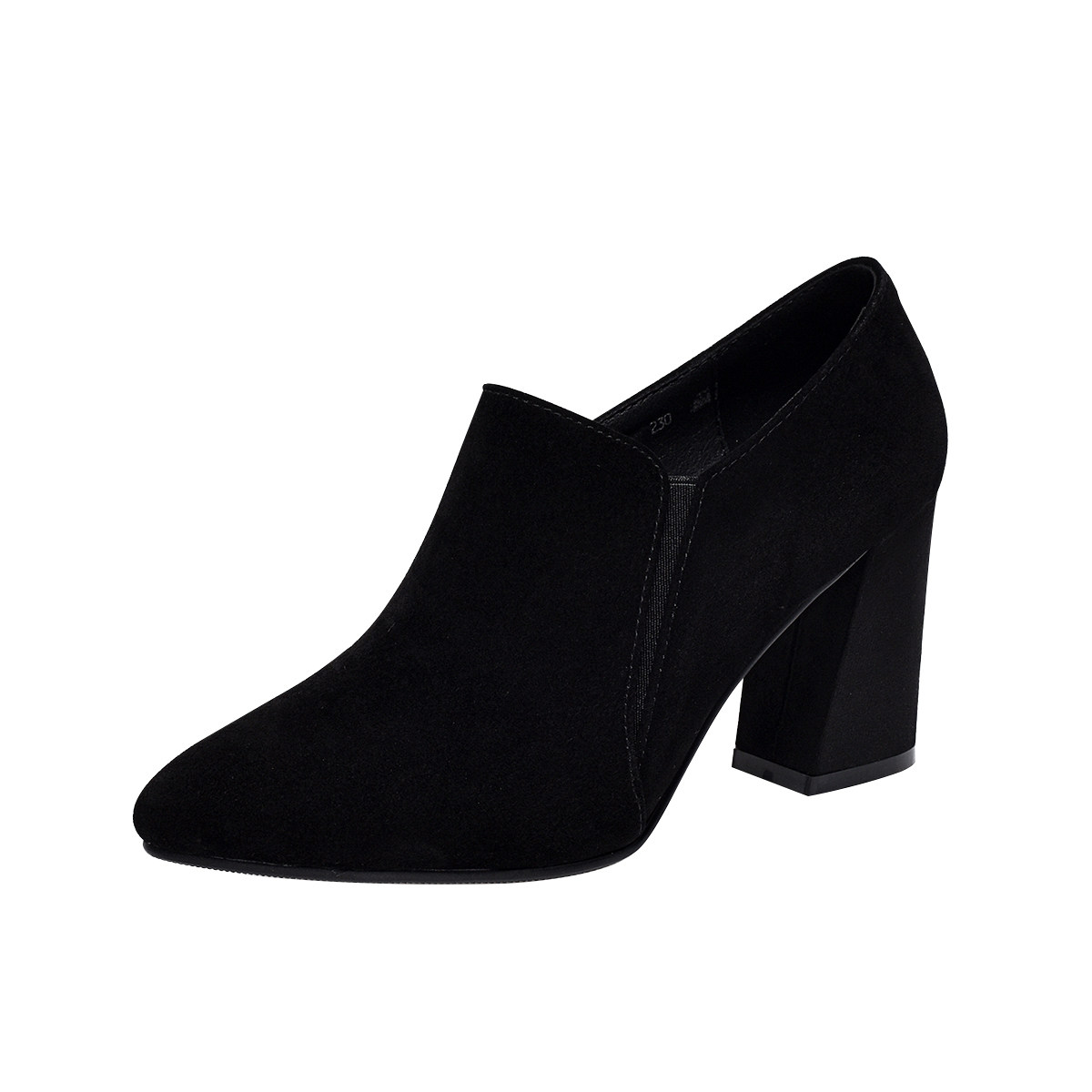 311线报网描述:羊反绒面粗跟高跟鞋 优雅时尚气质不累脚