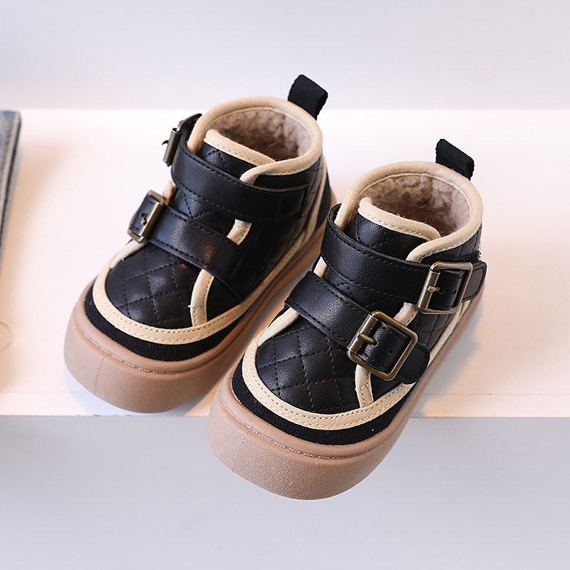 儿童高帮鞋男童鞋子秋冬款2022年韩版加绒棉鞋板鞋皮面百搭运动鞋