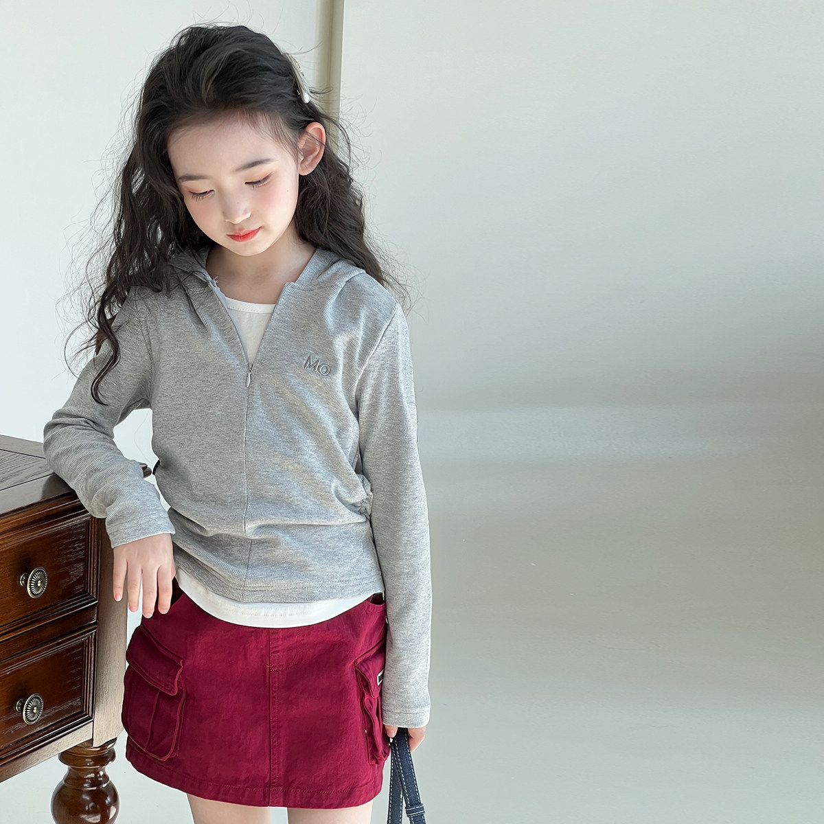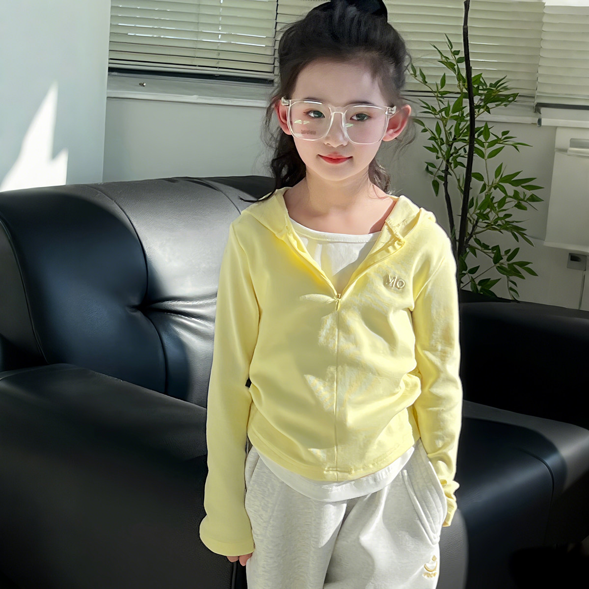 女童T恤2026春季新款儿童假两件连帽长袖中大童洋气休闲上衣春装