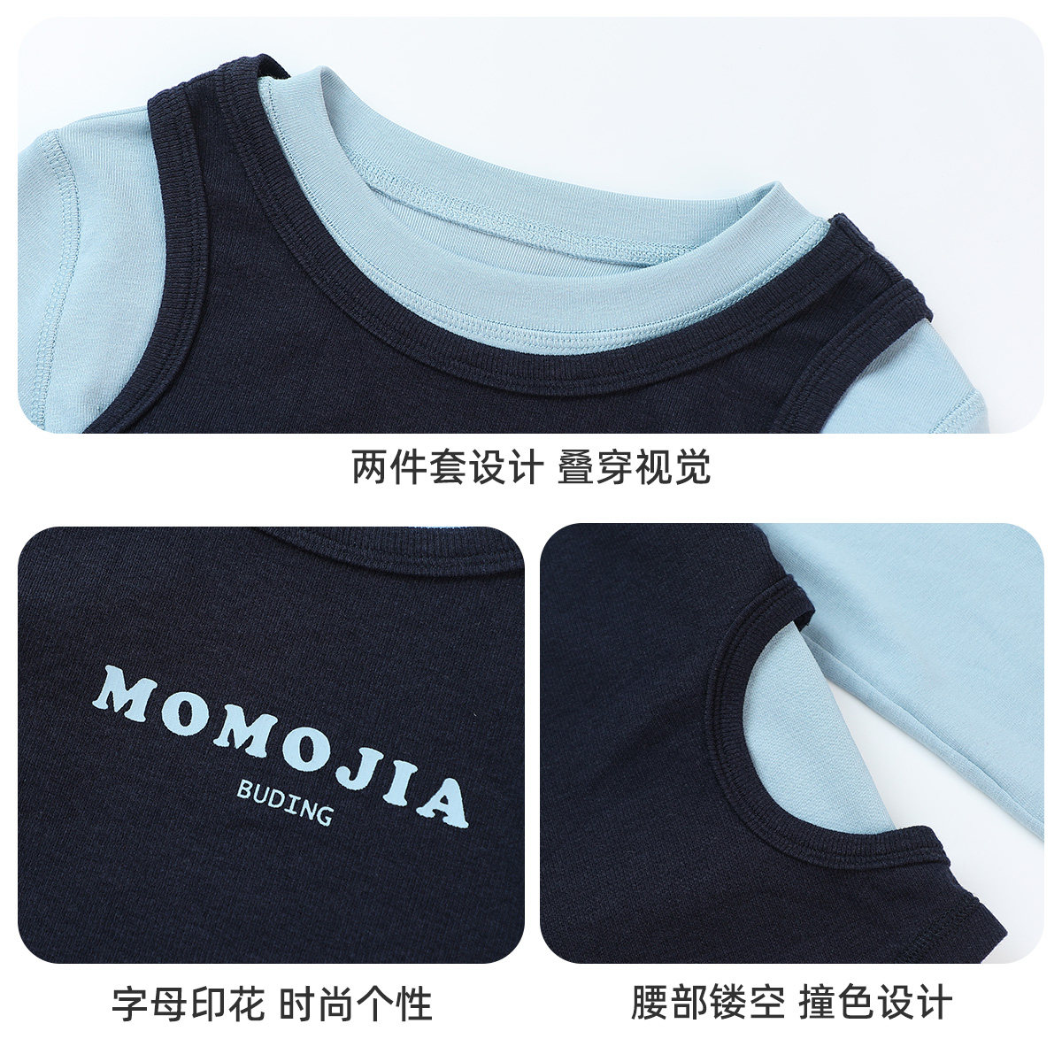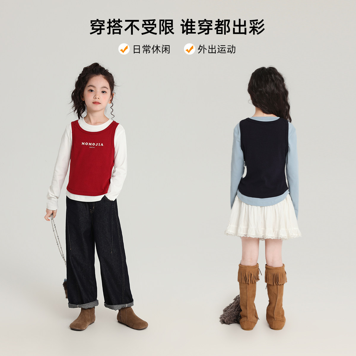 布丁哈鲁童装秋装女童百搭上衣2026春秋新款儿童假两件字母T恤