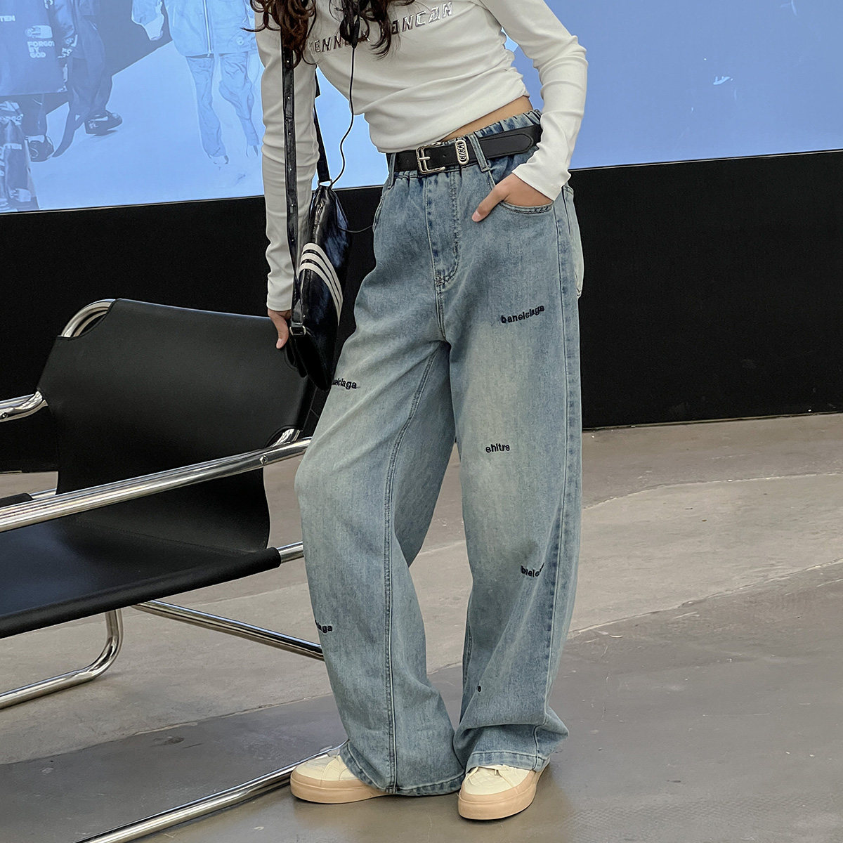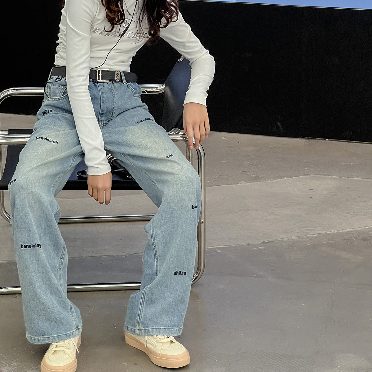 女童牛仔裤春秋款2026新款中大童直筒阔腿裤初中生青少年女孩裤子