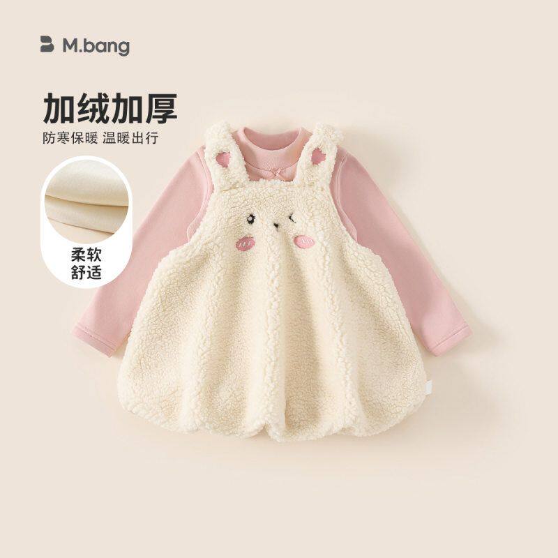 小一家冬季儿童衣服女宝宝连衣裙套装加绒吊带裙内搭女童裙子两件
