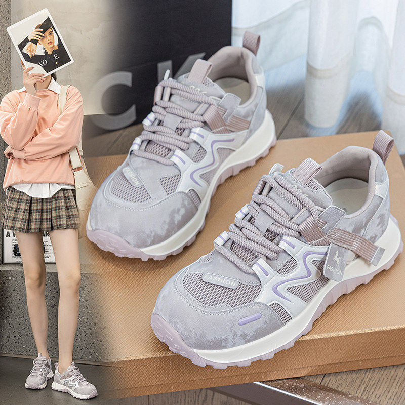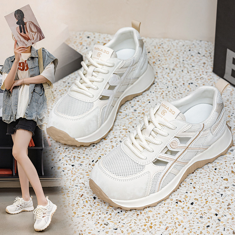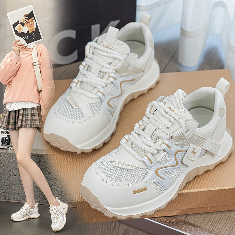 2026新款今年流行爆款春夏网面透气大码女鞋41到43真皮软底老爹鞋