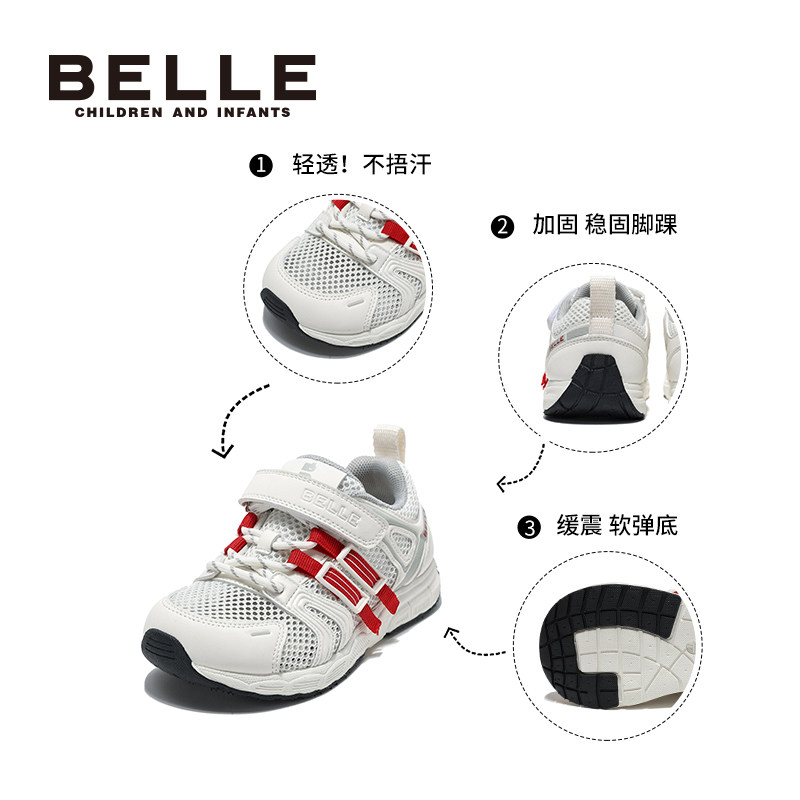 百丽童鞋女童运动鞋春季新款男童跑步鞋儿童透气网面休闲鞋中大童