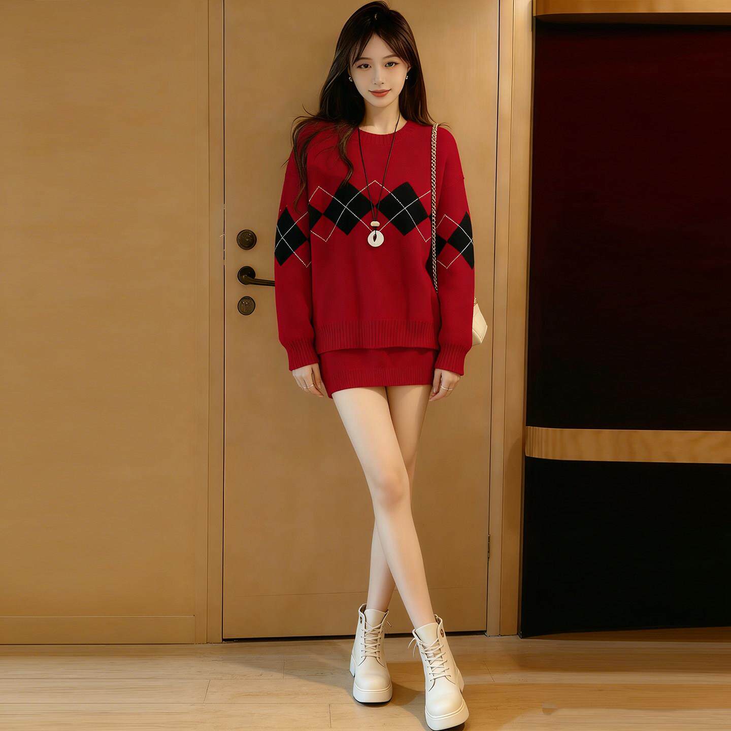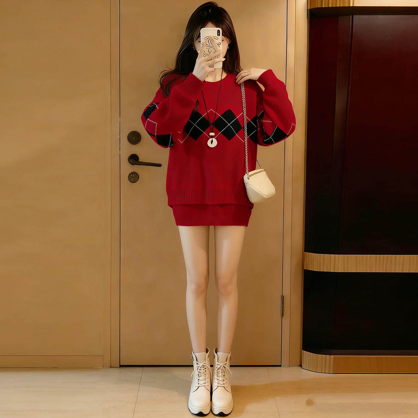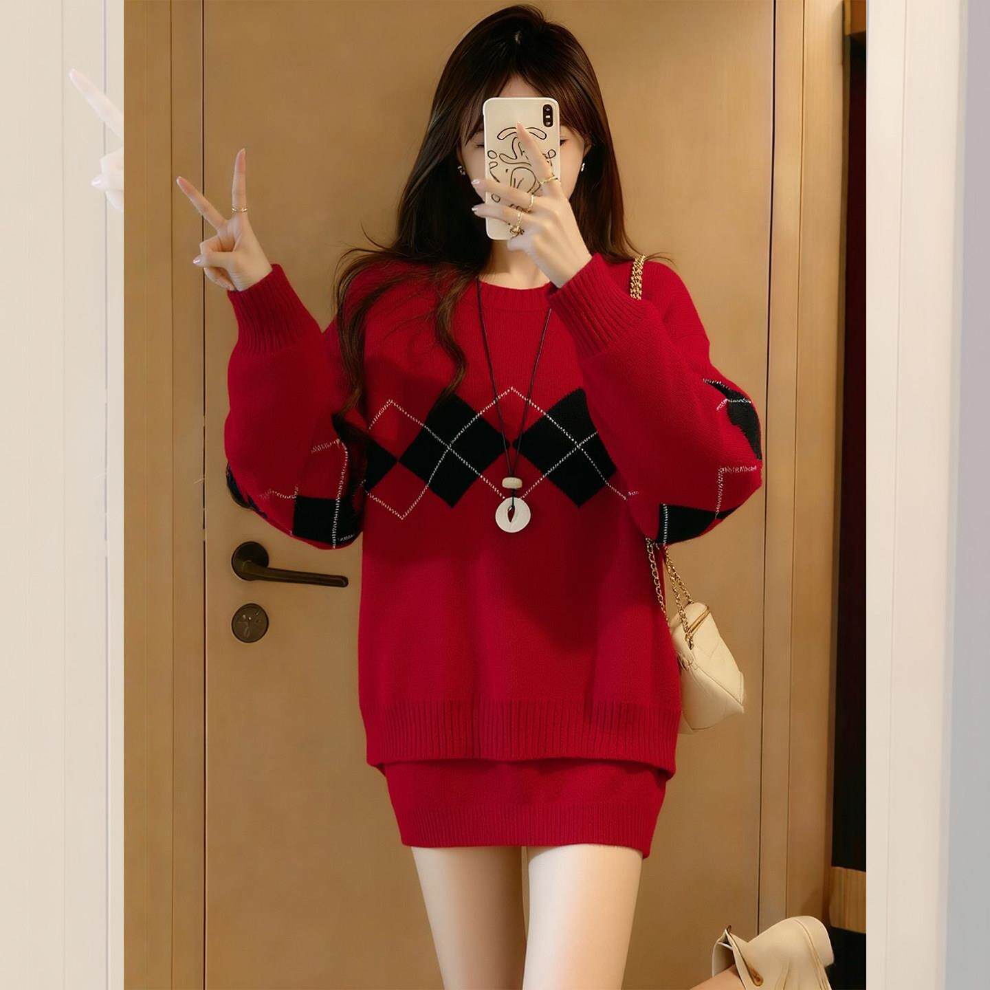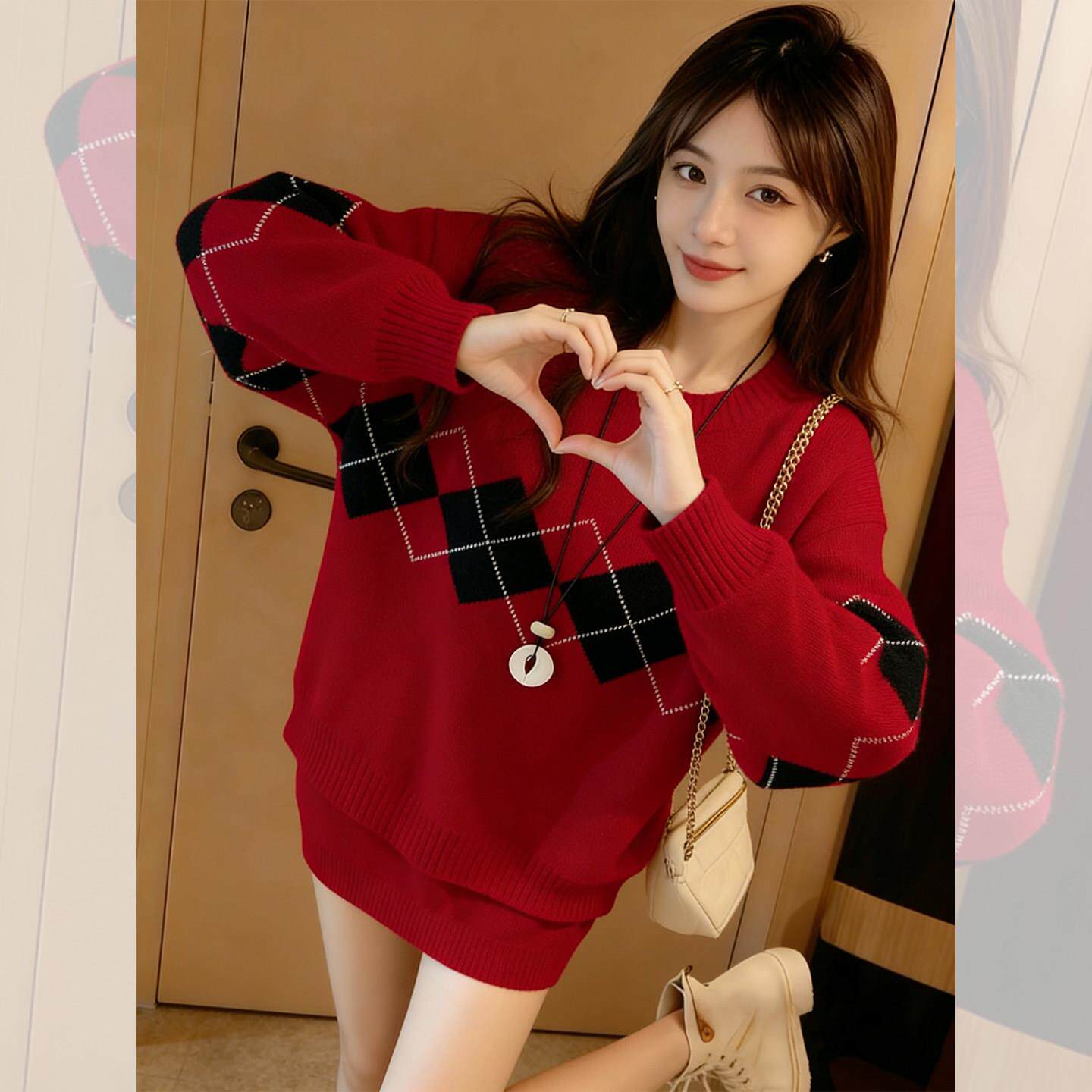 红色毛衣女款2026新款冬季多巴胺跨年过年穿搭新年本命年马年衣服