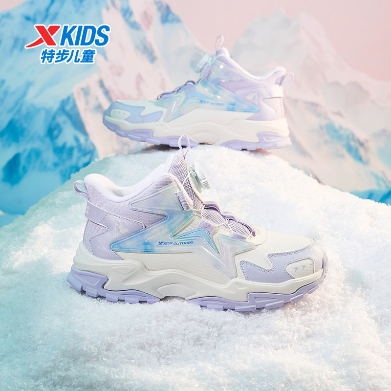 特步儿童鞋冬季新款高帮鞋皮面保暖鞋棉鞋女童冬鞋中大童运动鞋子