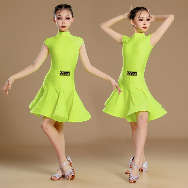 新款拉丁舞裙春夏儿童练功服女孩考级少儿舞蹈规定服分体比赛服装