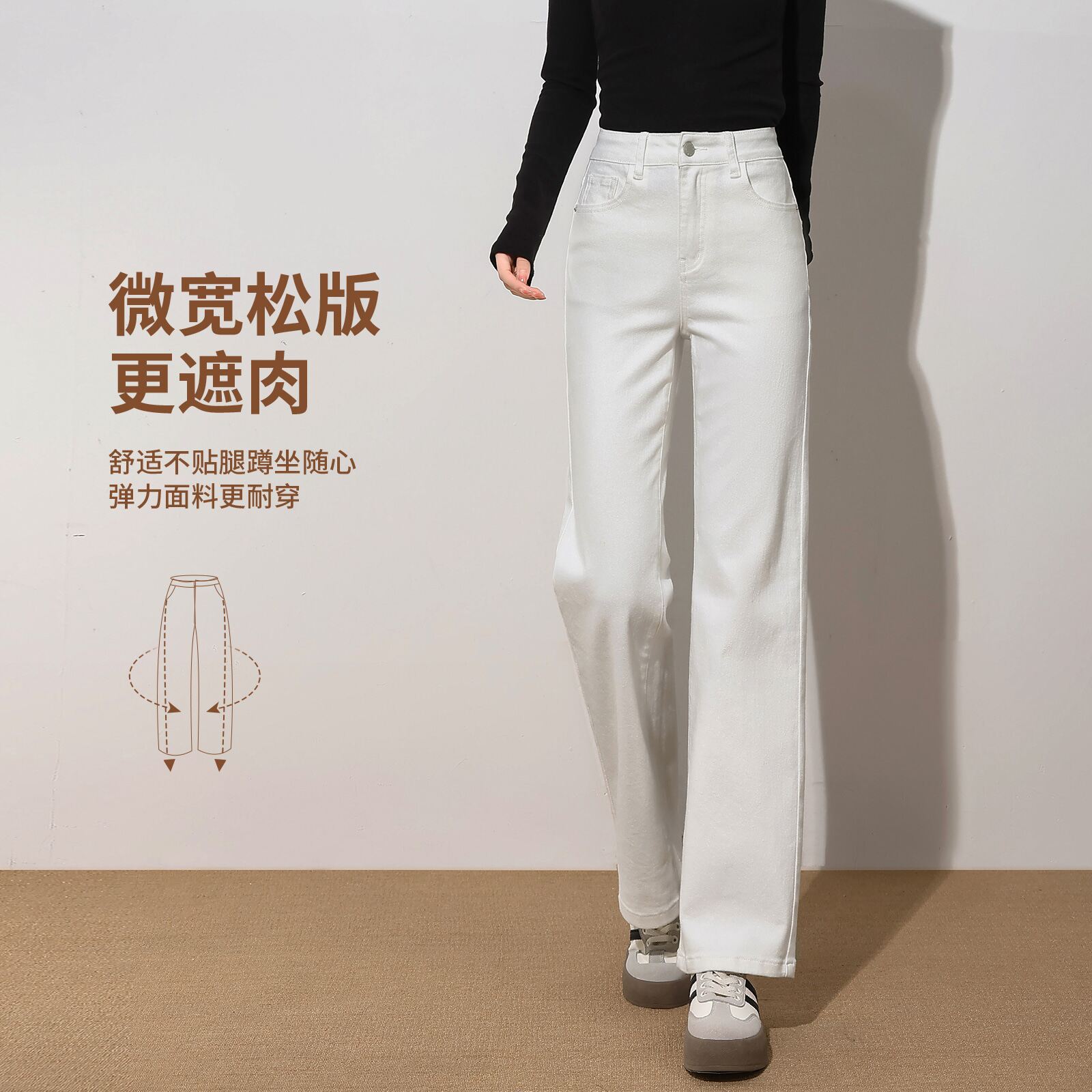 直筒牛仔裤女2026年新款时尚潮流白色高腰小个子春秋窄版阔腿裤子