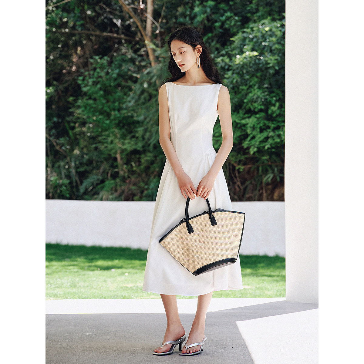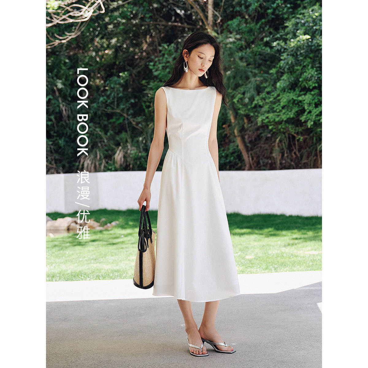 衣香丽影白色无袖凉感连衣裙女2026夏装新款一字肩今年流行长裙子