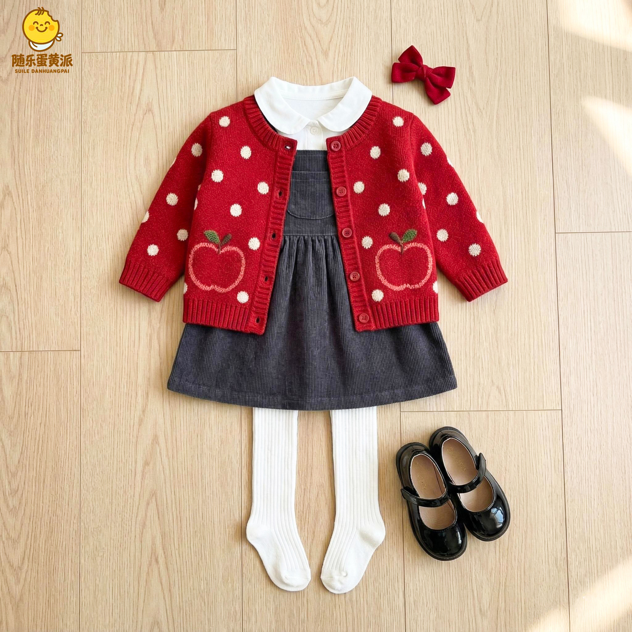 红色新款女宝宝春季毛衣开衫女童外套小婴儿童幼儿薄款上衣针织衫