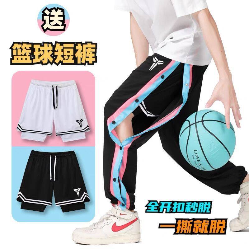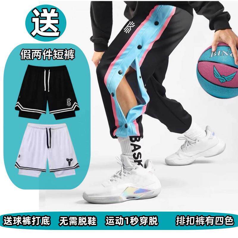 秋季高街排扣裤男美式篮球全开扣秒脱欧文训练服短裤儿童运动长裤
