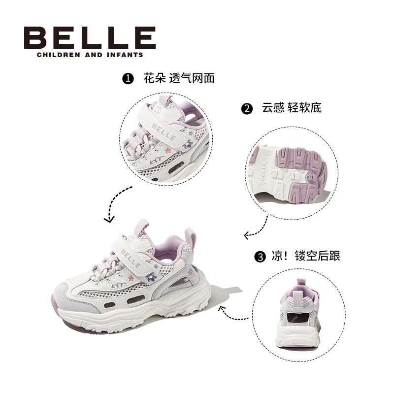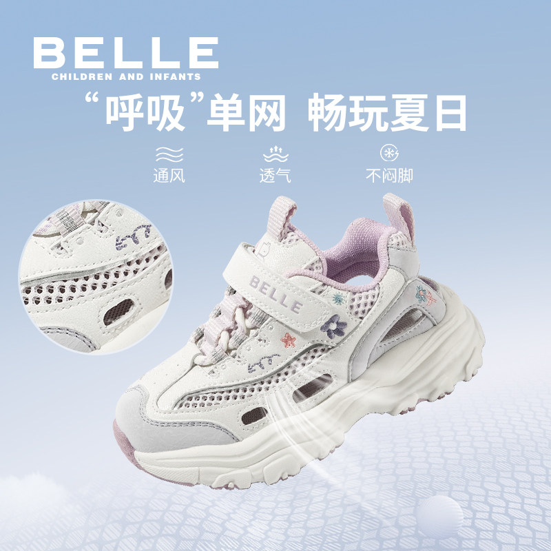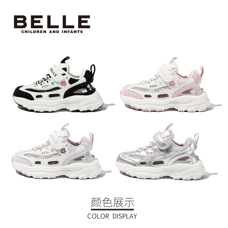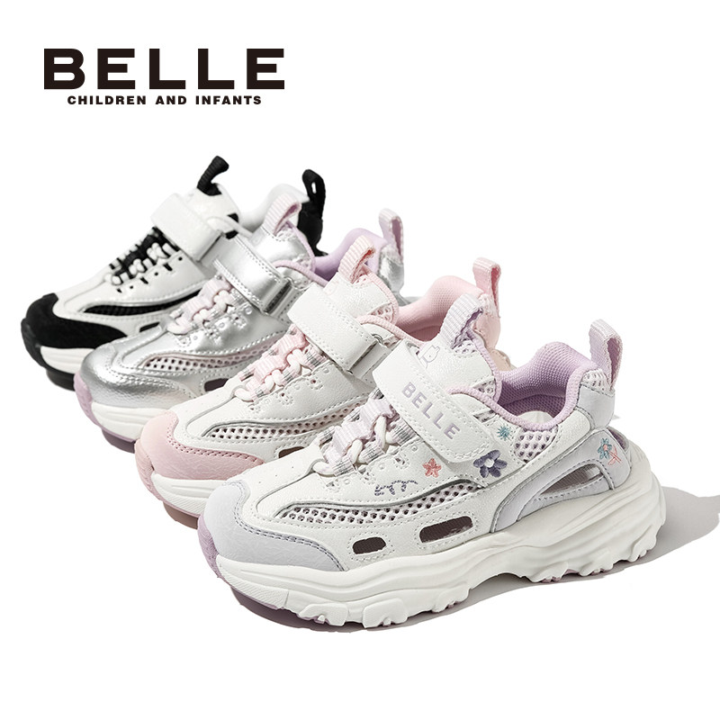 百丽童鞋女童刺绣运动鞋2025春新款儿童透气老爹鞋中大童网面鞋子
