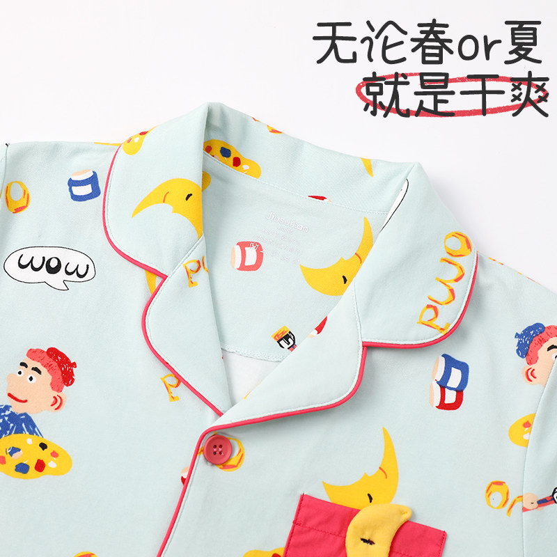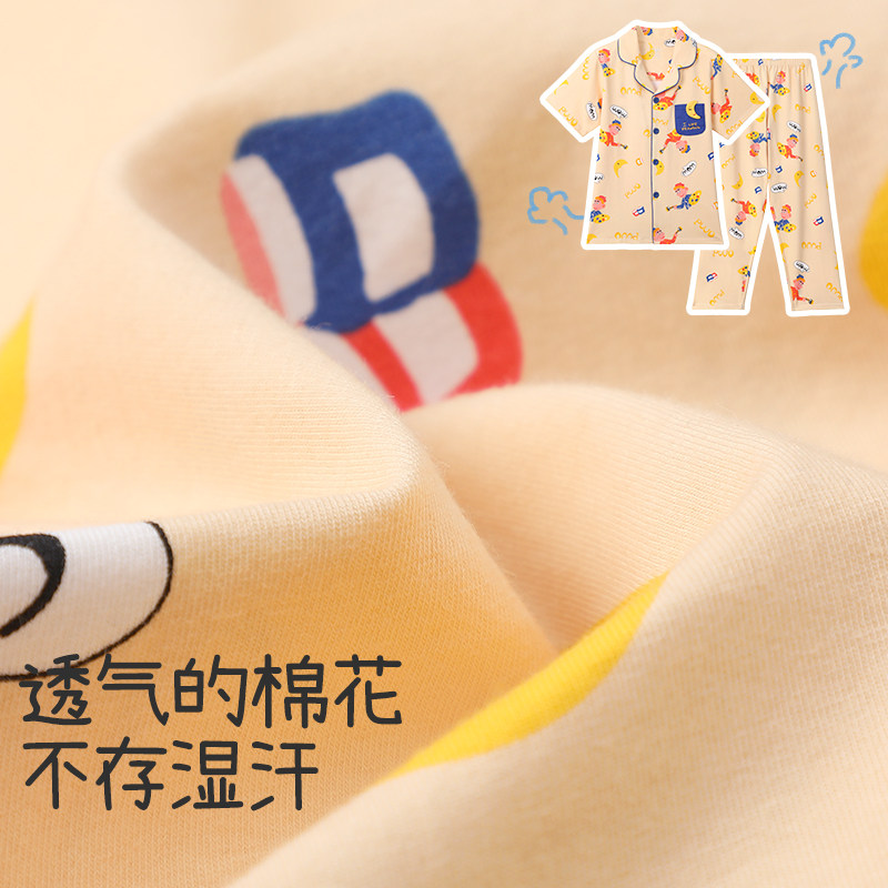 久岁伴儿童睡衣男童夏季短袖长裤中小童薄款透气纯棉家居服套装