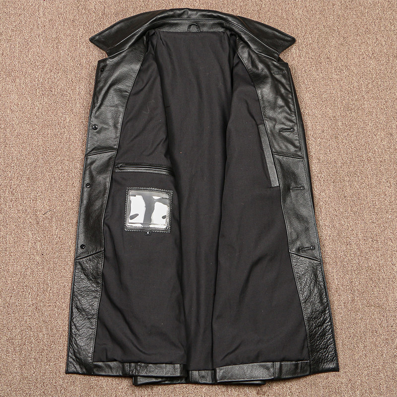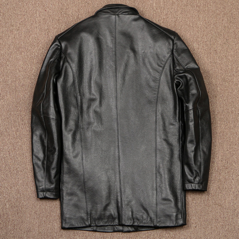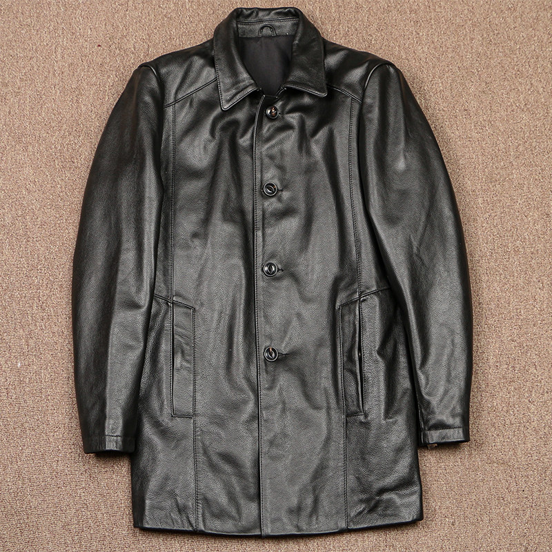 头层小牛皮中长款风衣男士真皮皮衣商务休闲黑色修身时尚大码外套