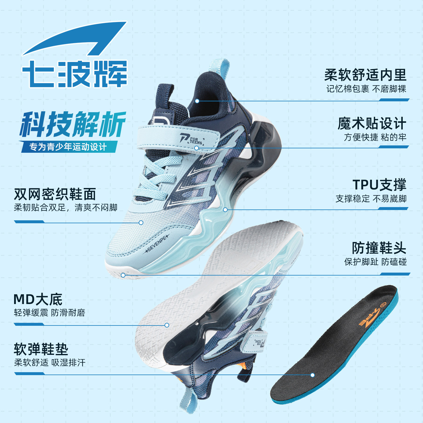七波辉男童网面运动鞋2025秋冬季男大童防水皮面鞋儿童鞋子跑步鞋