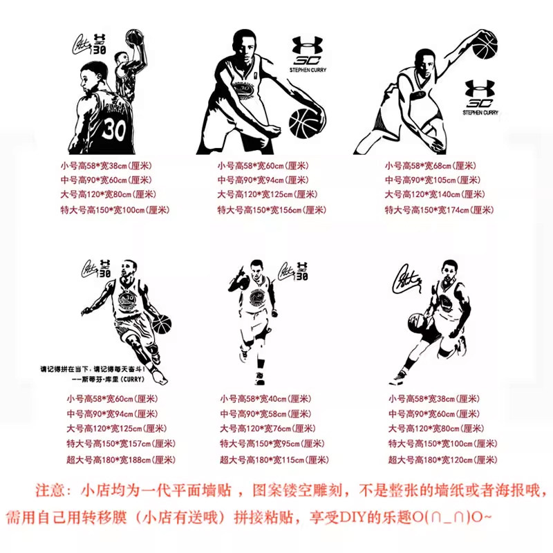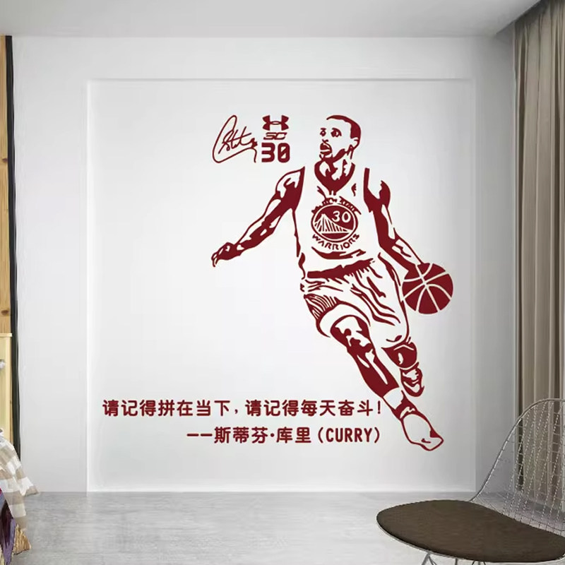 NBA勇士队库里投篮墙贴纸篮球明星海报贴画寝室卧室篮球馆防水贴