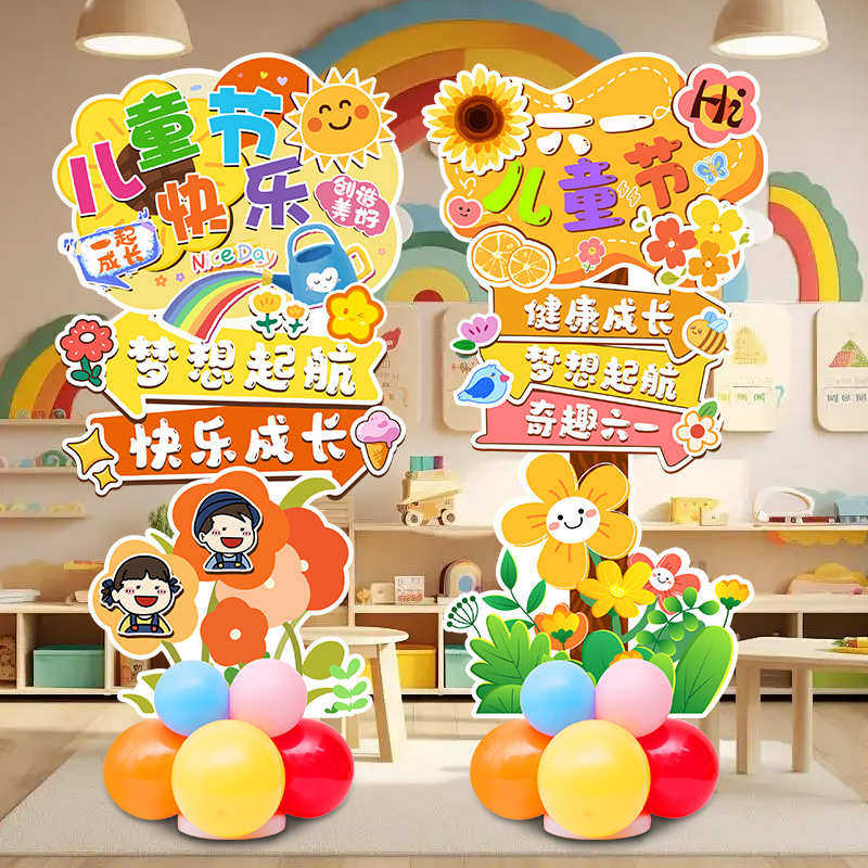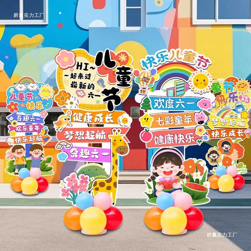 六一儿童节场景布置气球立柱迎宾牌幼儿园小学教室61氛围装饰摆件
