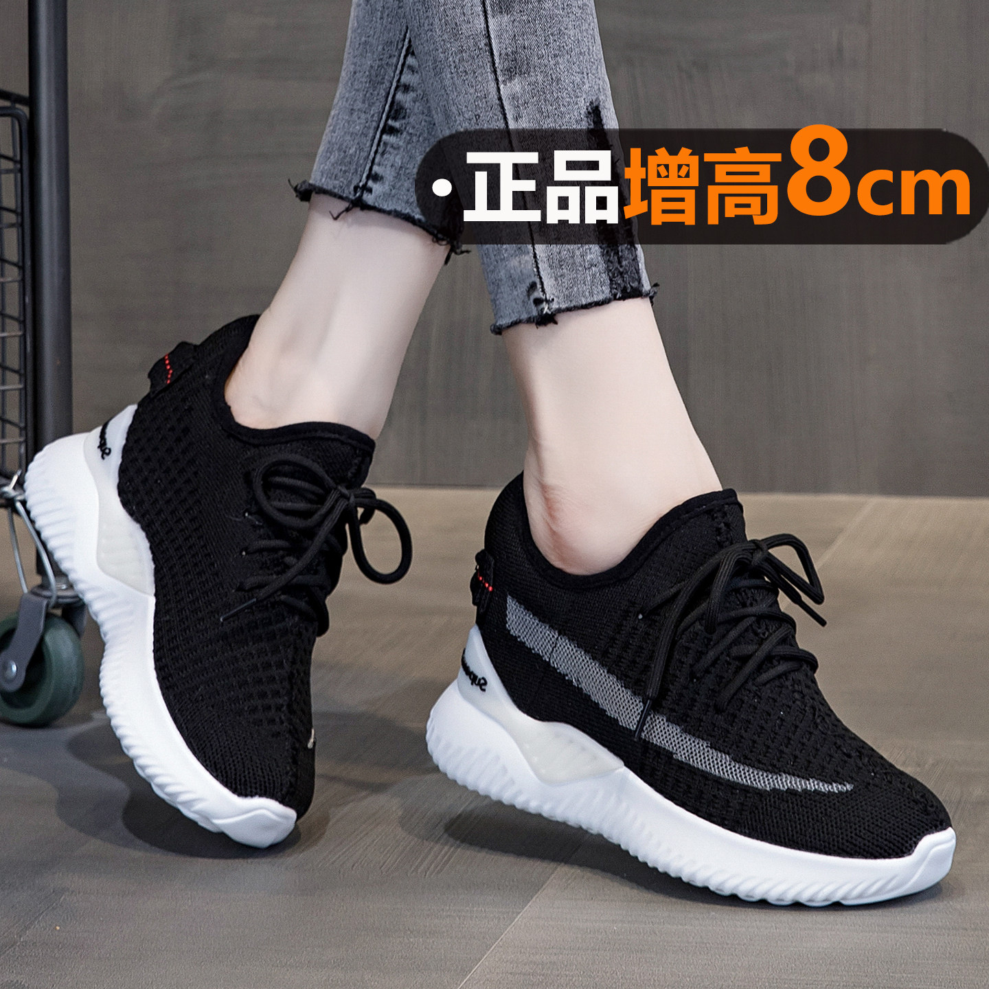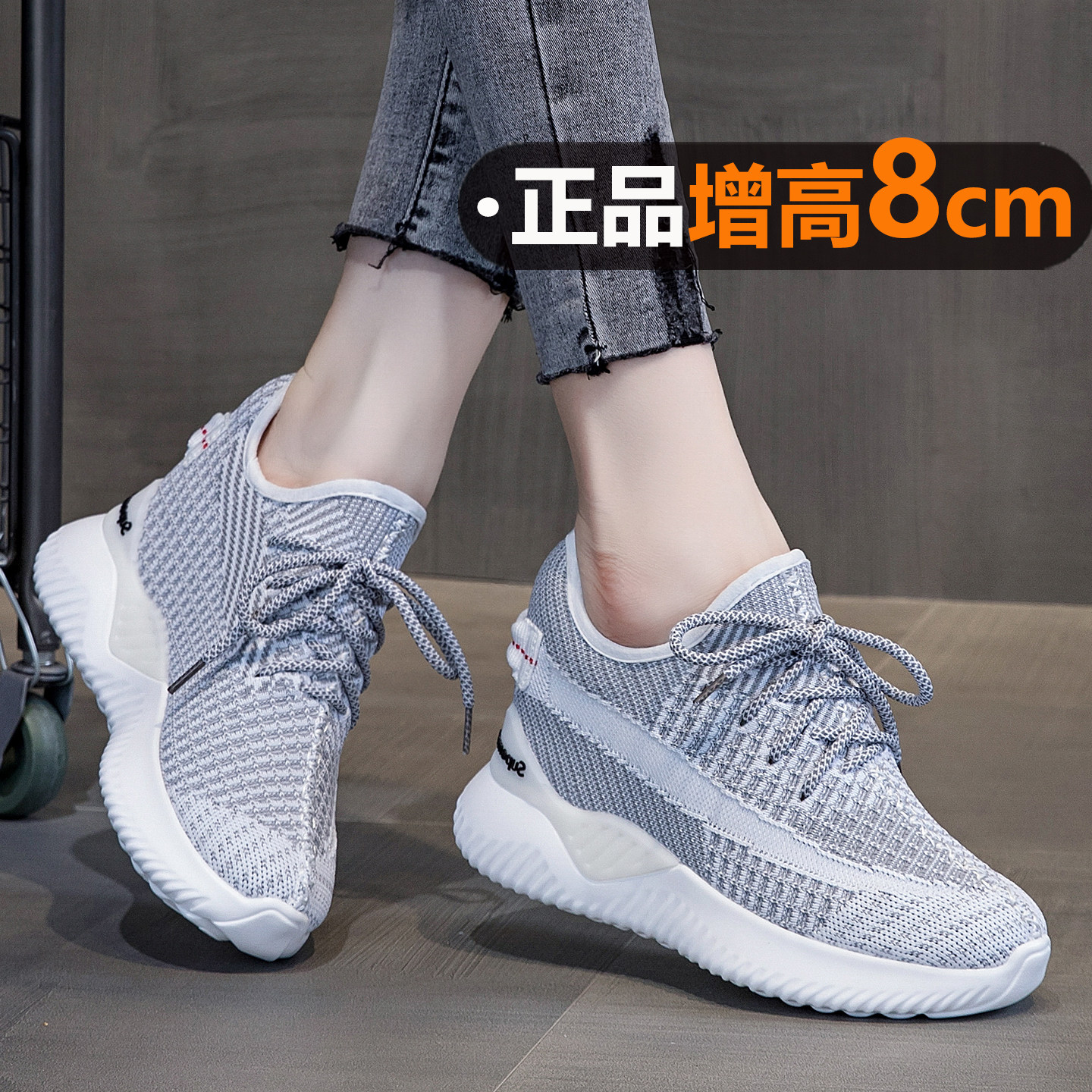 8cm内增高女鞋轻便网面椰子鞋2026新款春夏休闲运动鞋透气不累脚