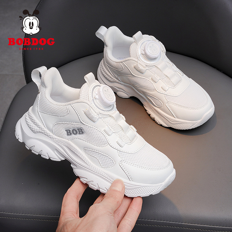 巴布豆童鞋男童小黑鞋旋转纽扣儿童黑色运动鞋校园女童网面跑步鞋