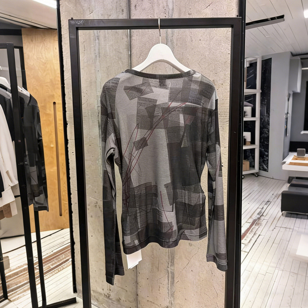 2026早春新款小众撞色圆领报纸印花长袖T恤修身百搭薄款休闲上衣