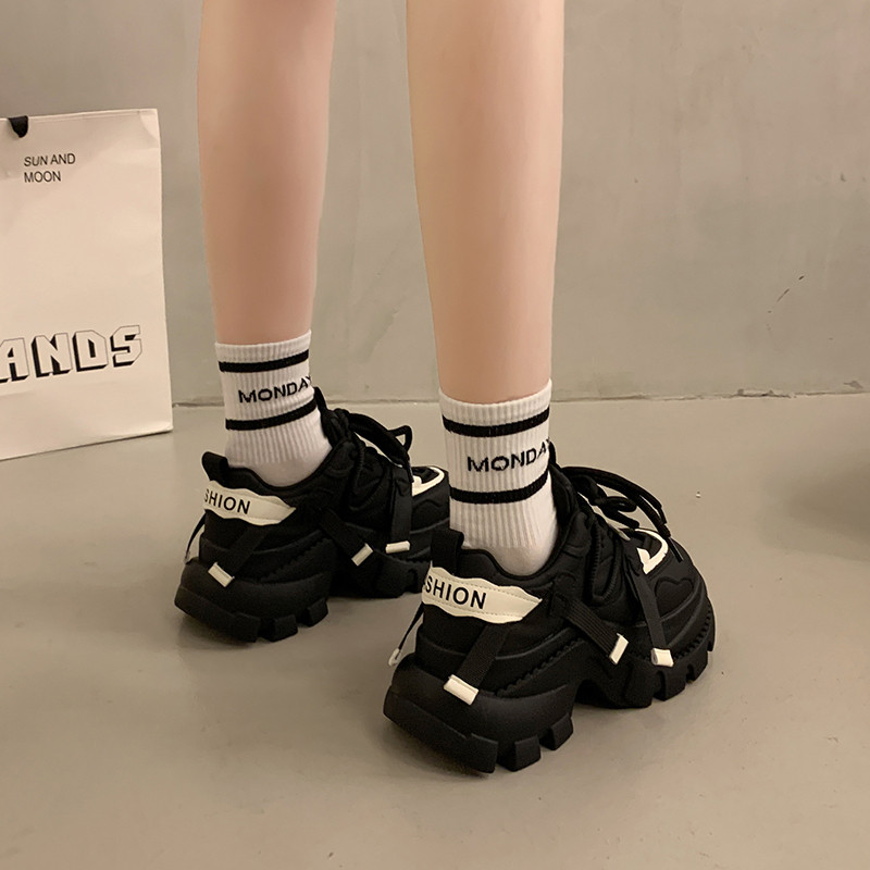 踩屎感松糕厚底老爹鞋女小个子增高黑色运动休闲鞋春季超火潮鞋子