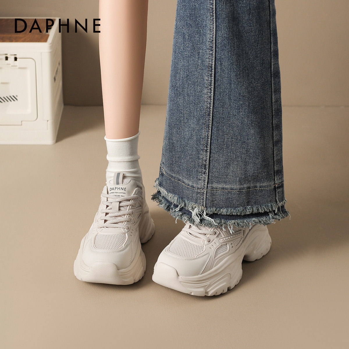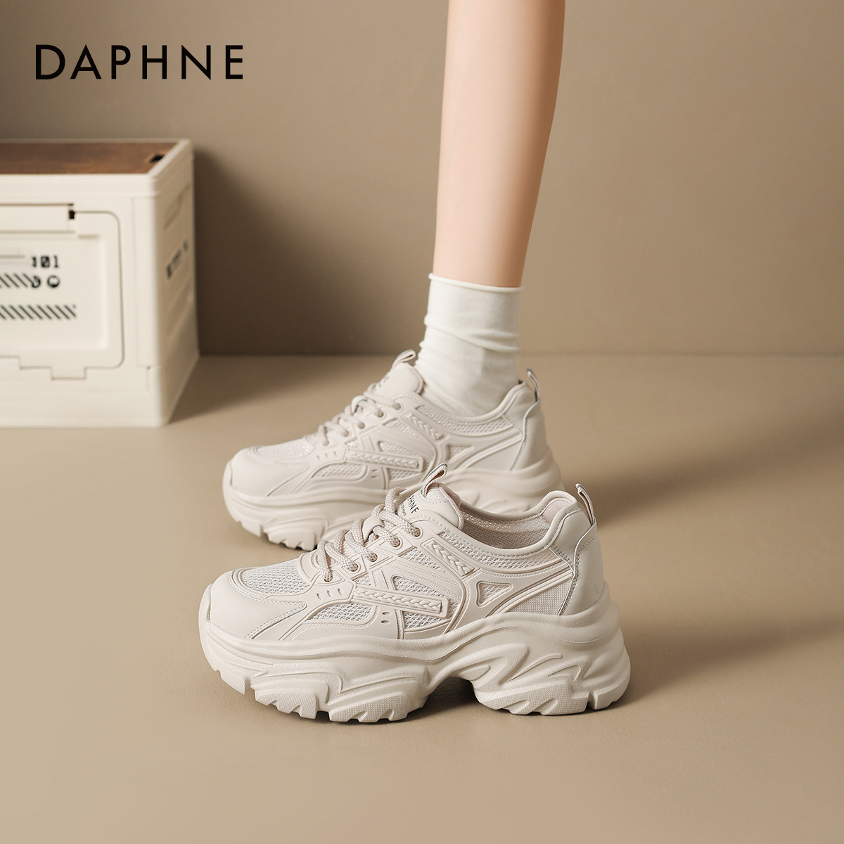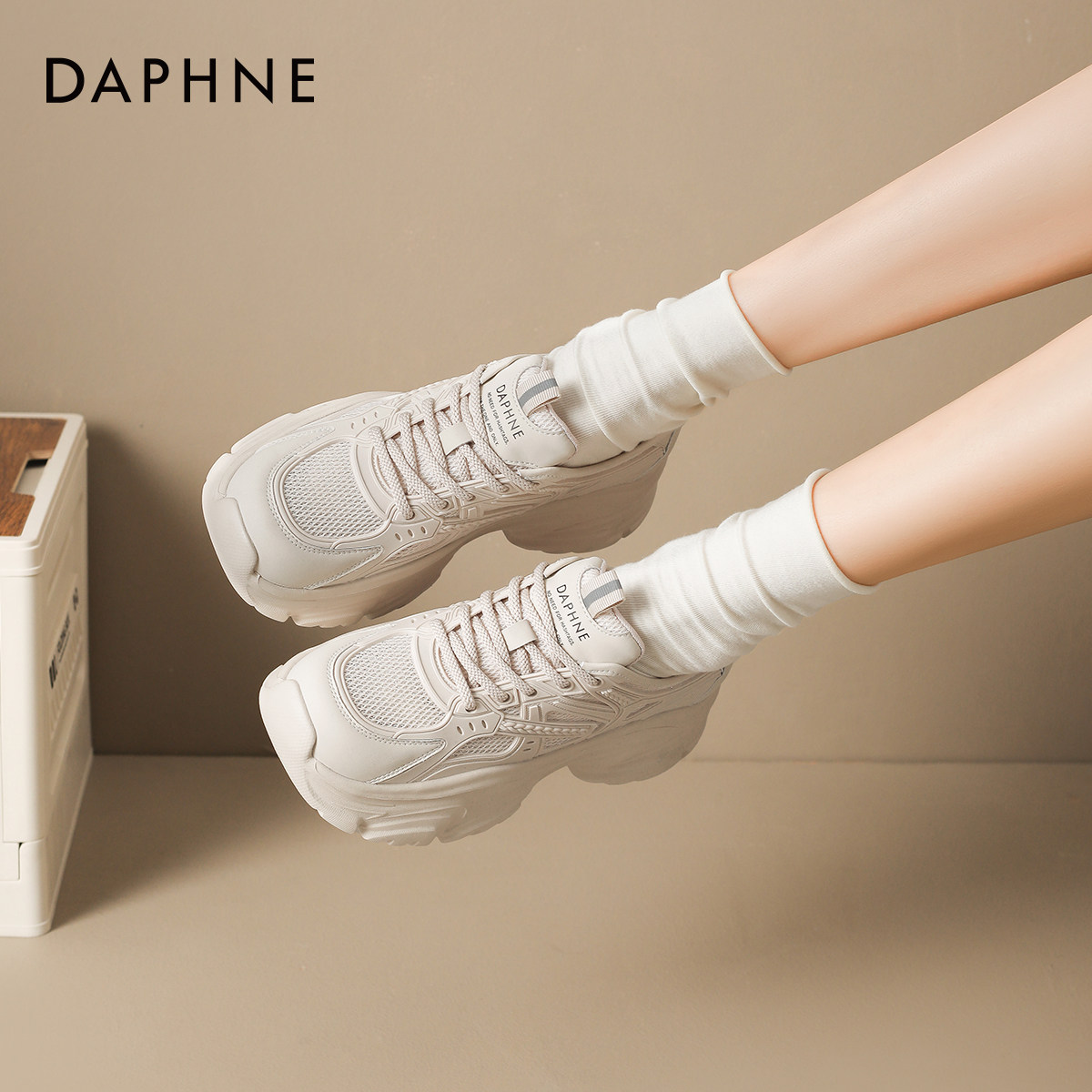达芙妮杏色厚底老爹鞋女款2026新款春季小个子增高百搭运动休闲鞋