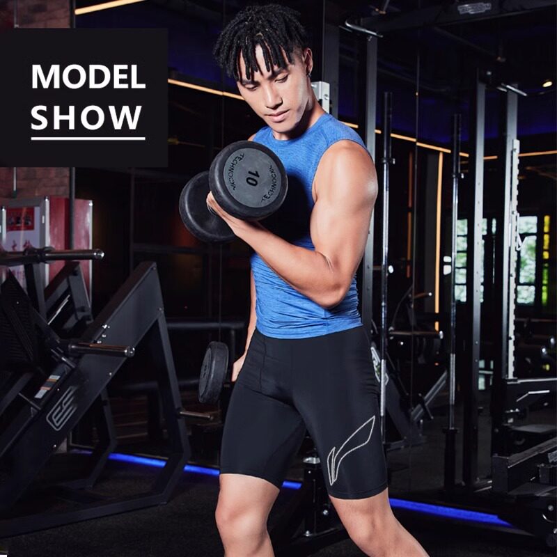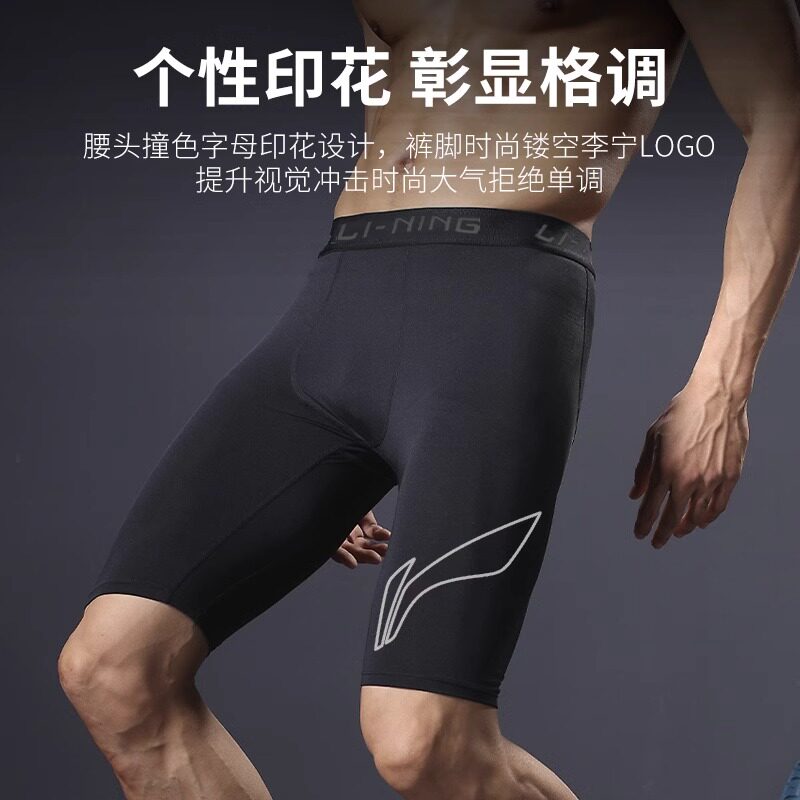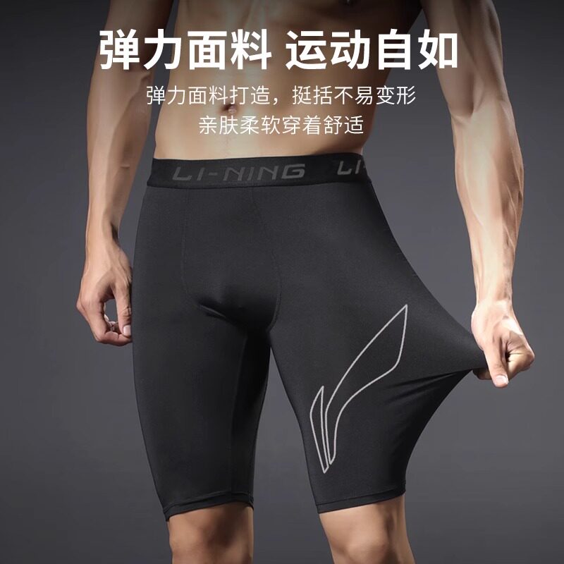 李宁紧身短裤男压缩裤高弹训练裤速干跑步田径五分运动篮球马拉松