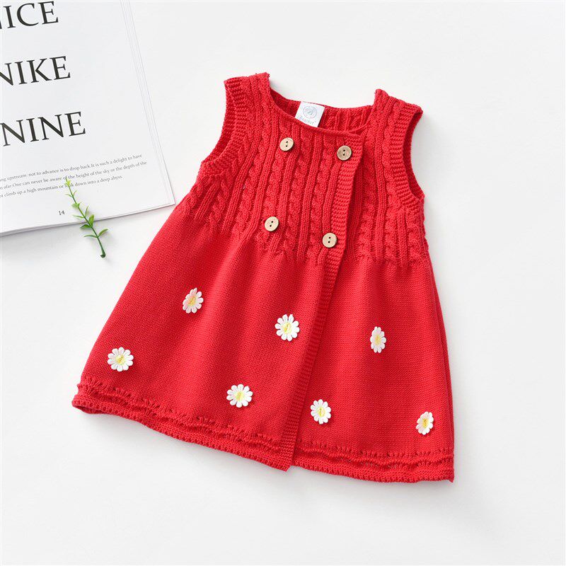 纯棉线不起球女童马甲裙宝宝针织连衣裙春秋款婴儿红色毛衣背心裙