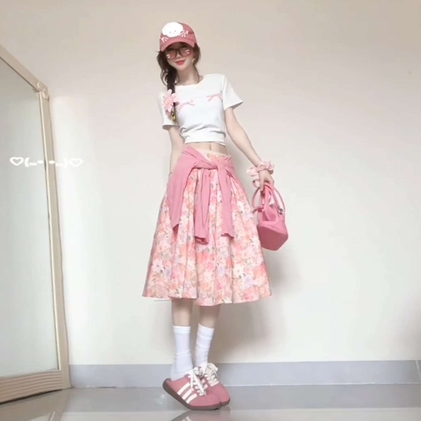 早春季韩系温柔氛围感粉色碎花长裙连衣裙子女夏2026新款穿搭套装