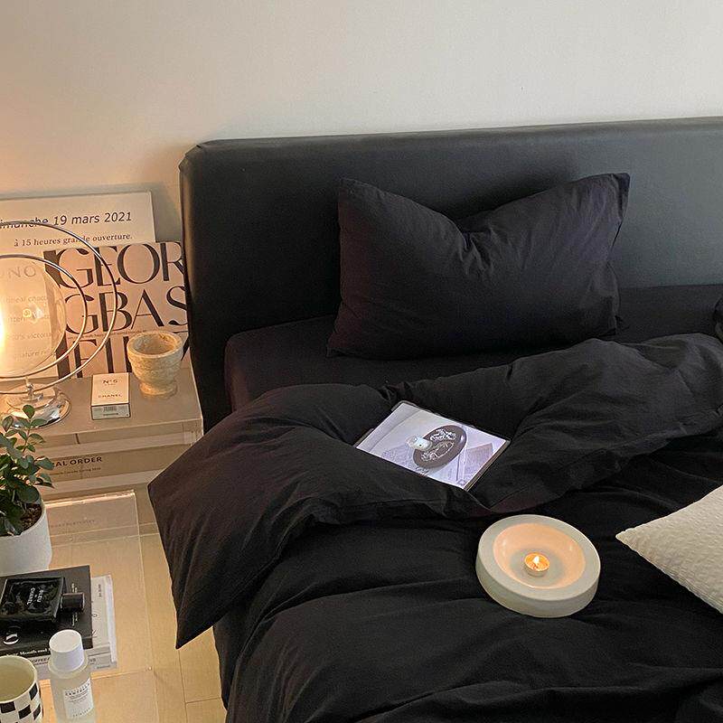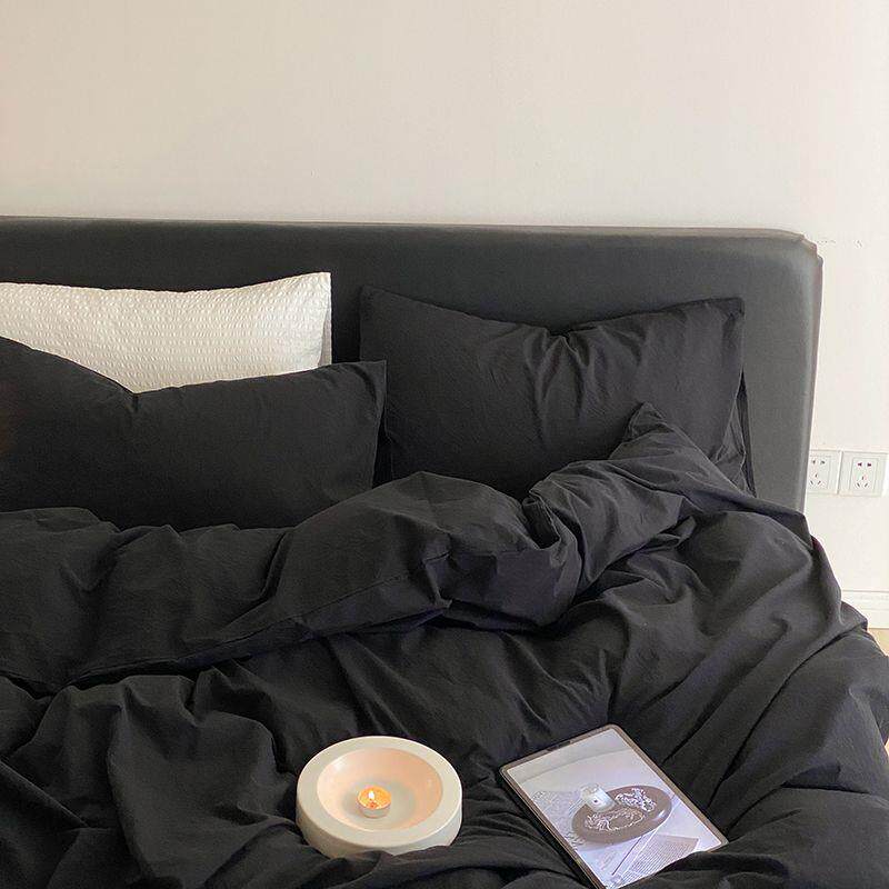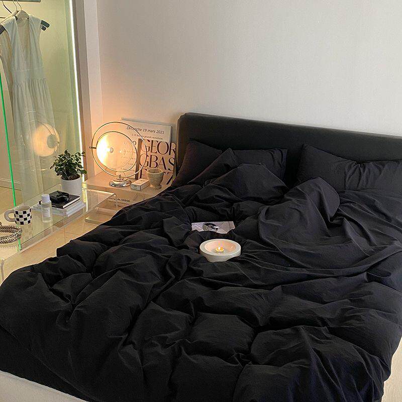 黑色ins风水洗棉全棉四件套纯棉床单被套男生床上三件套简约纯色4