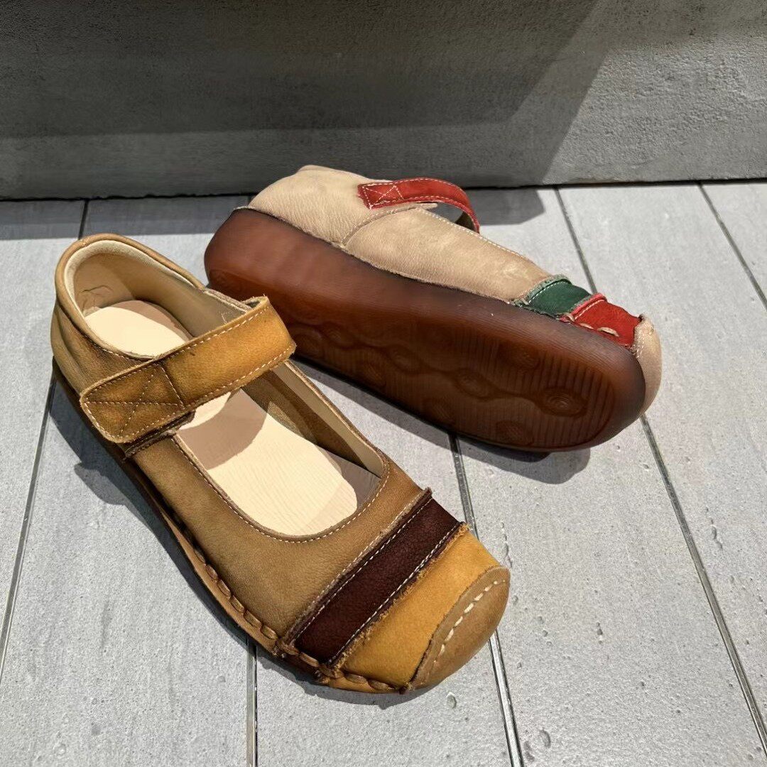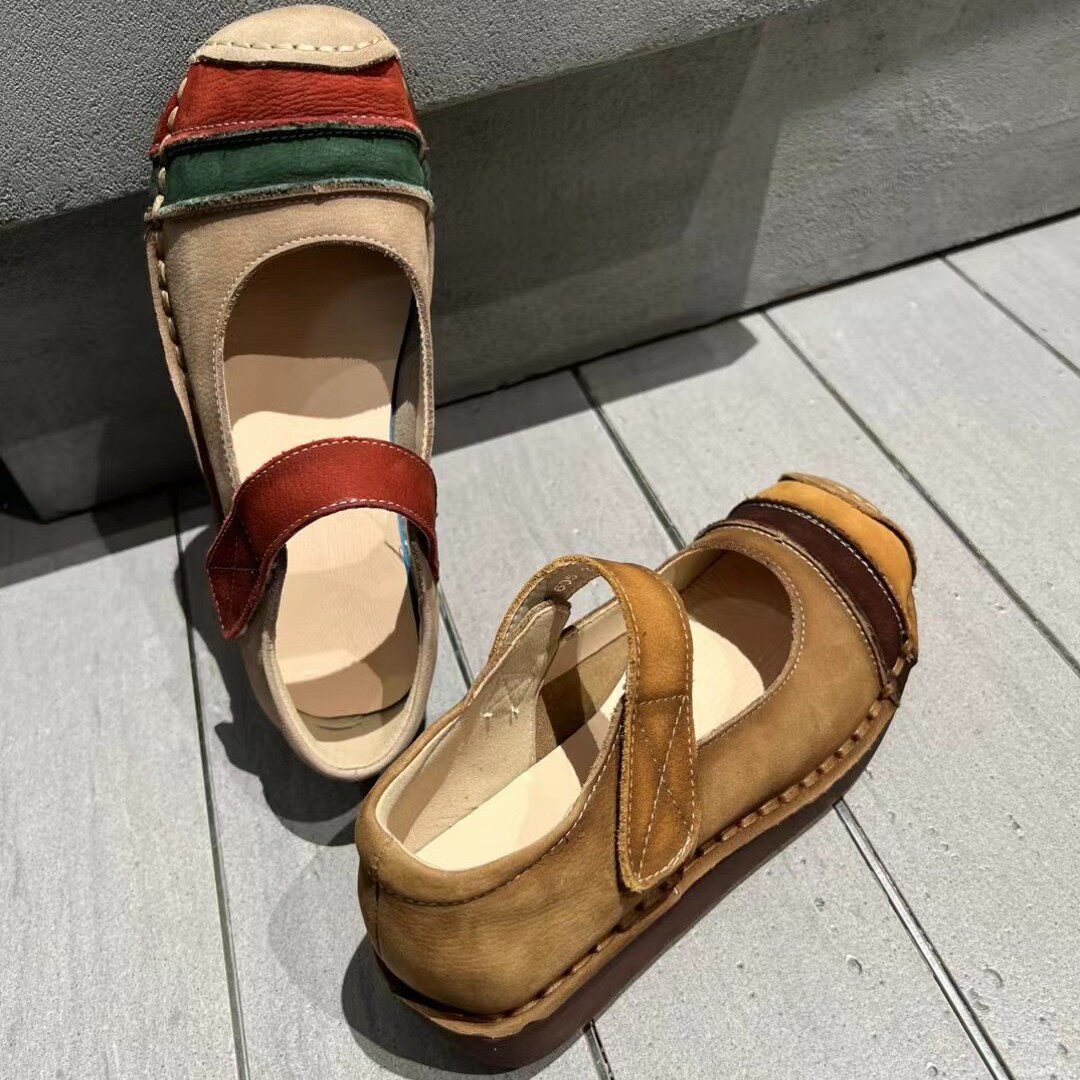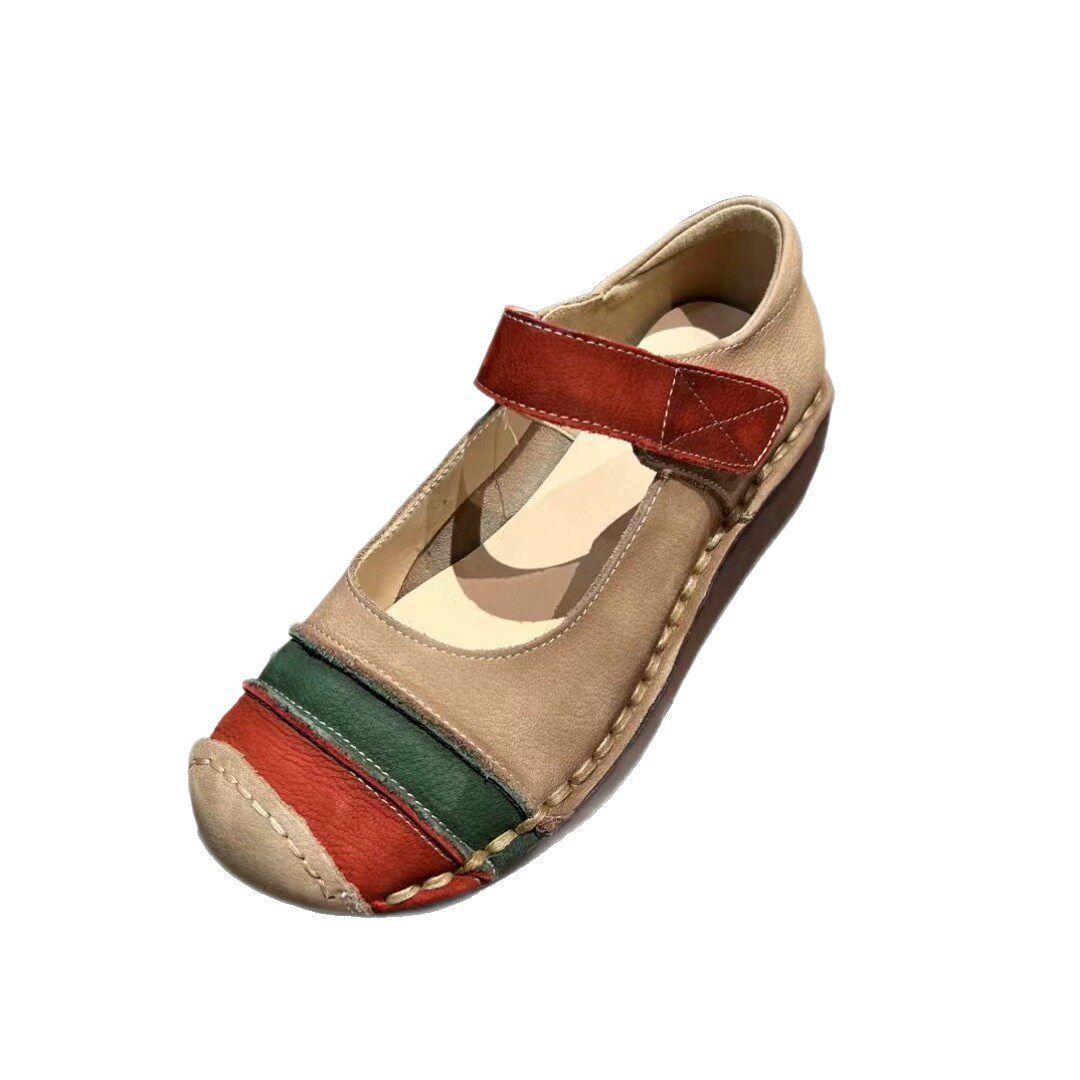 木森鸟26单鞋魔术贴头层牛皮拼色厚底女鞋加绒勃肯鞋复古拼色