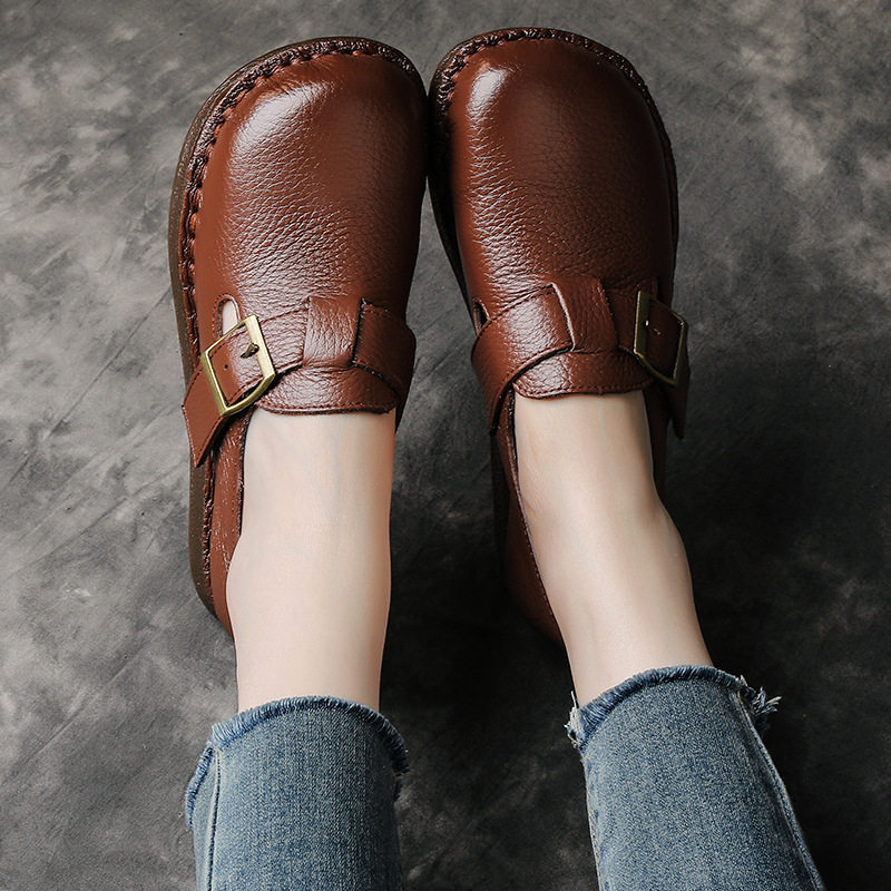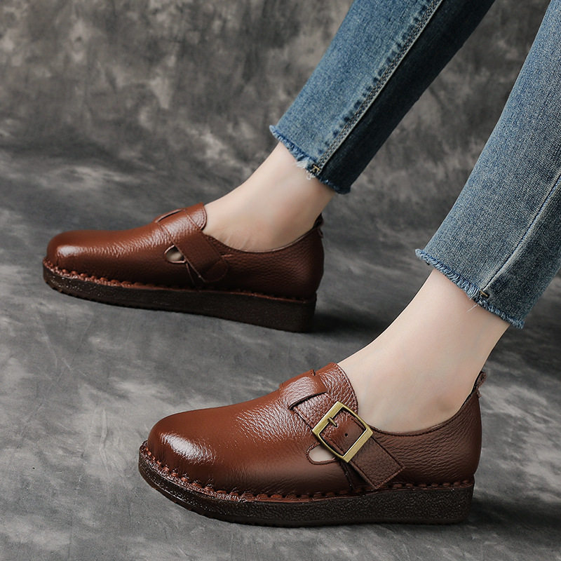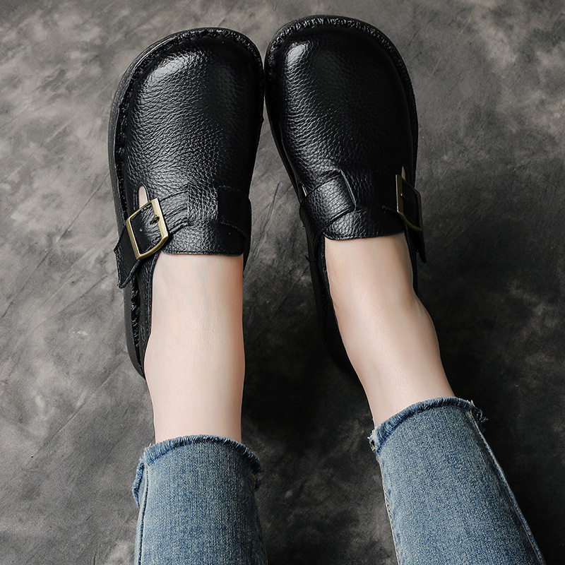 头层牛皮牛筋软底妈妈鞋春秋季宽胖脚单鞋套脚厚底皮鞋真皮勃肯鞋