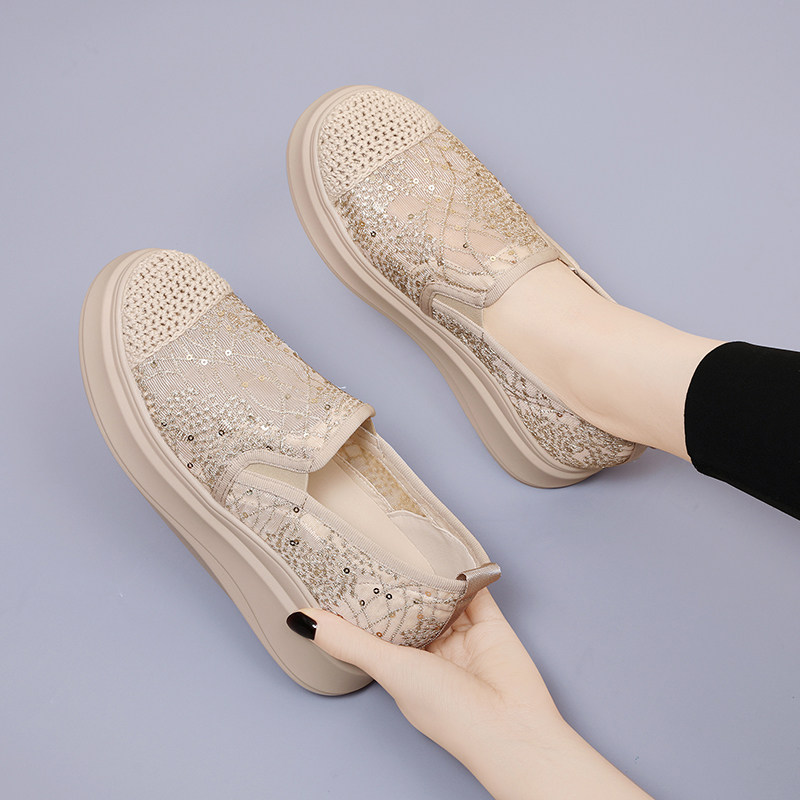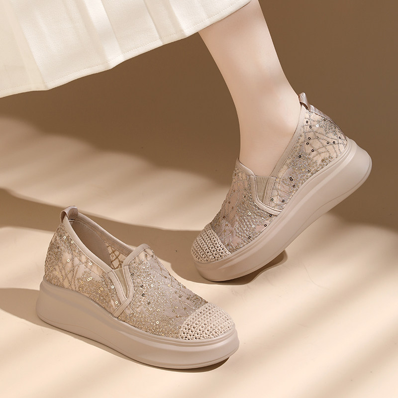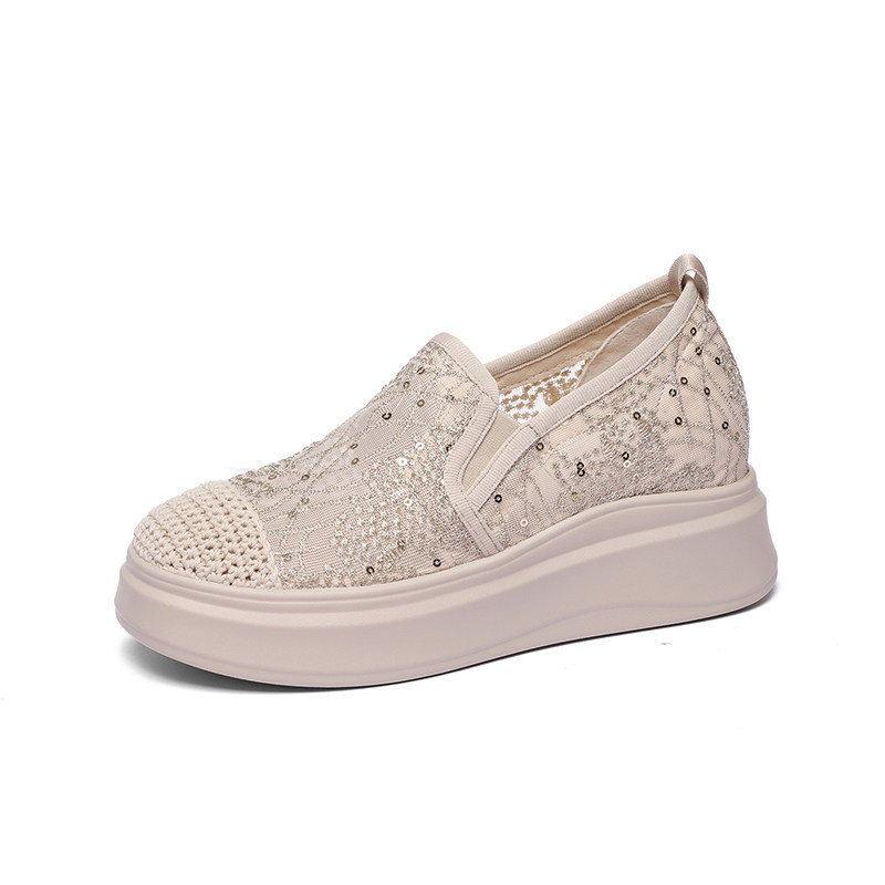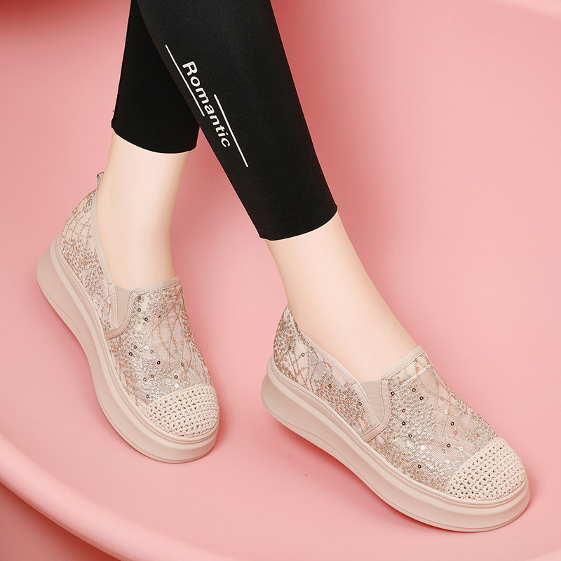 内增高女鞋2025夏季新款网面透气厚底休闲鞋搭配裙子的鞋子乐福鞋