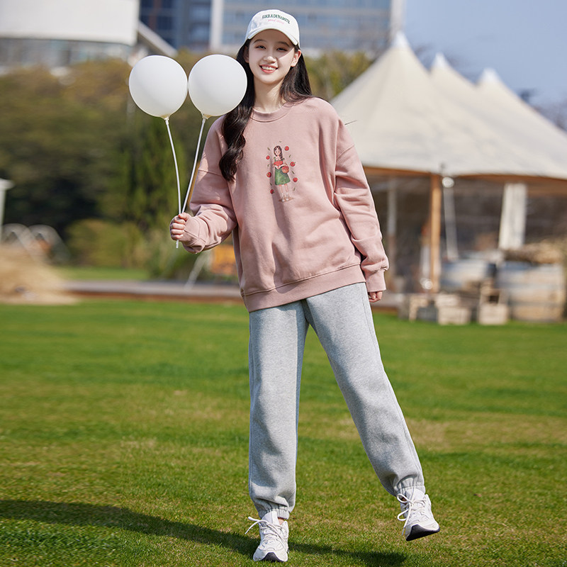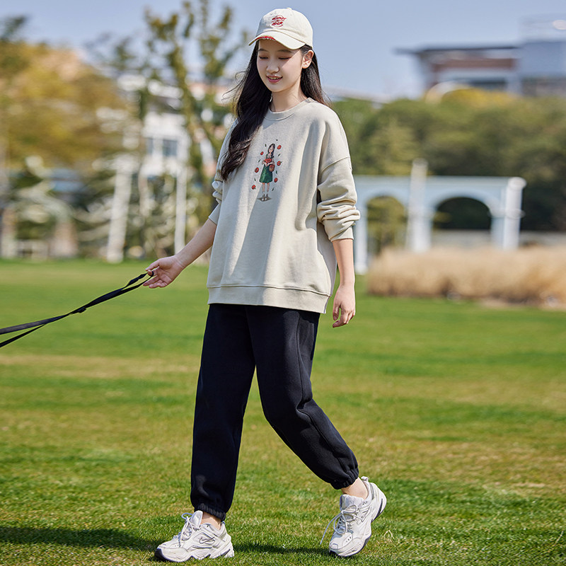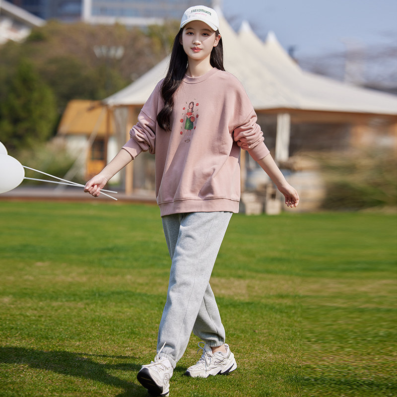 初中生春装卫衣少女学生印花圆领长袖T恤上衣女学院风休闲春秋款