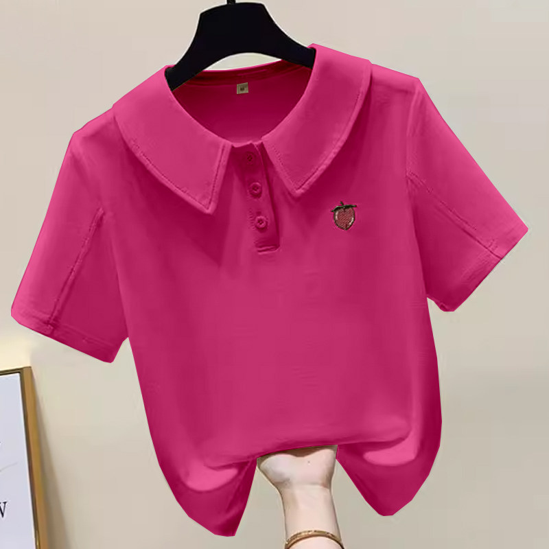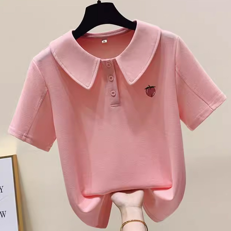 短袖t恤女2026年新款夏季娃娃领短款薄款设计感翻领上衣小众女款