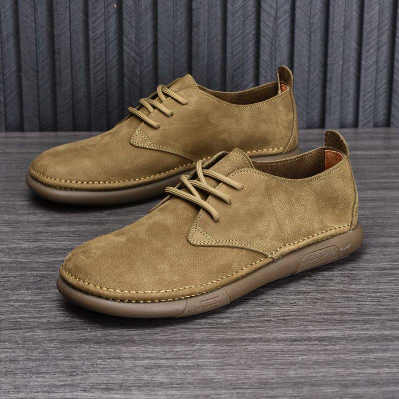 男士新款休闲单层头层牛皮透气磨砂皮鞋男款软底防滑真皮时尚男鞋
