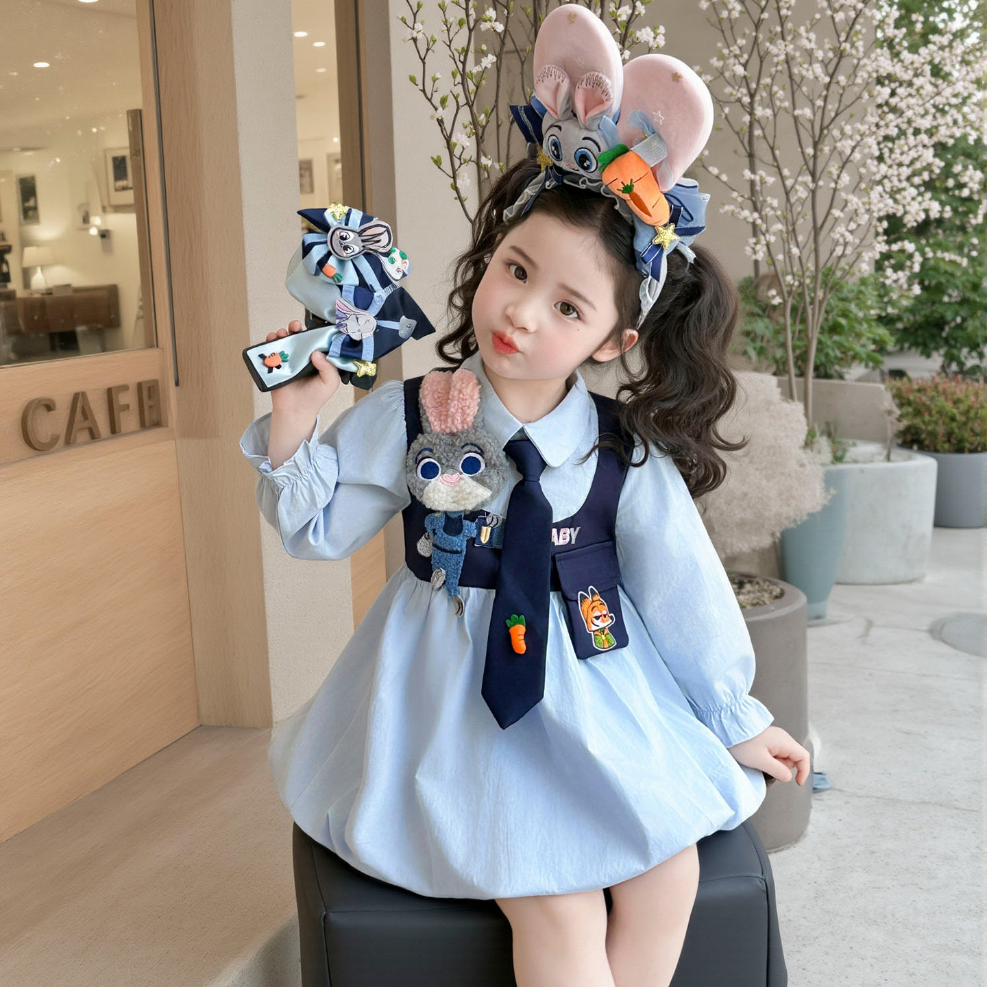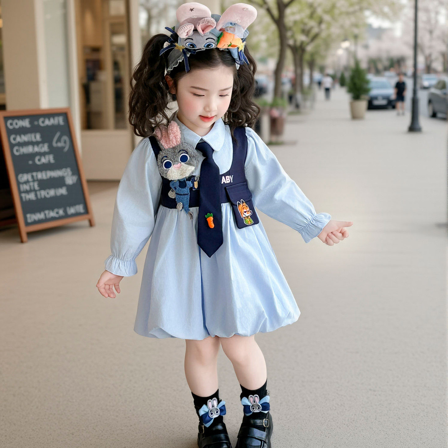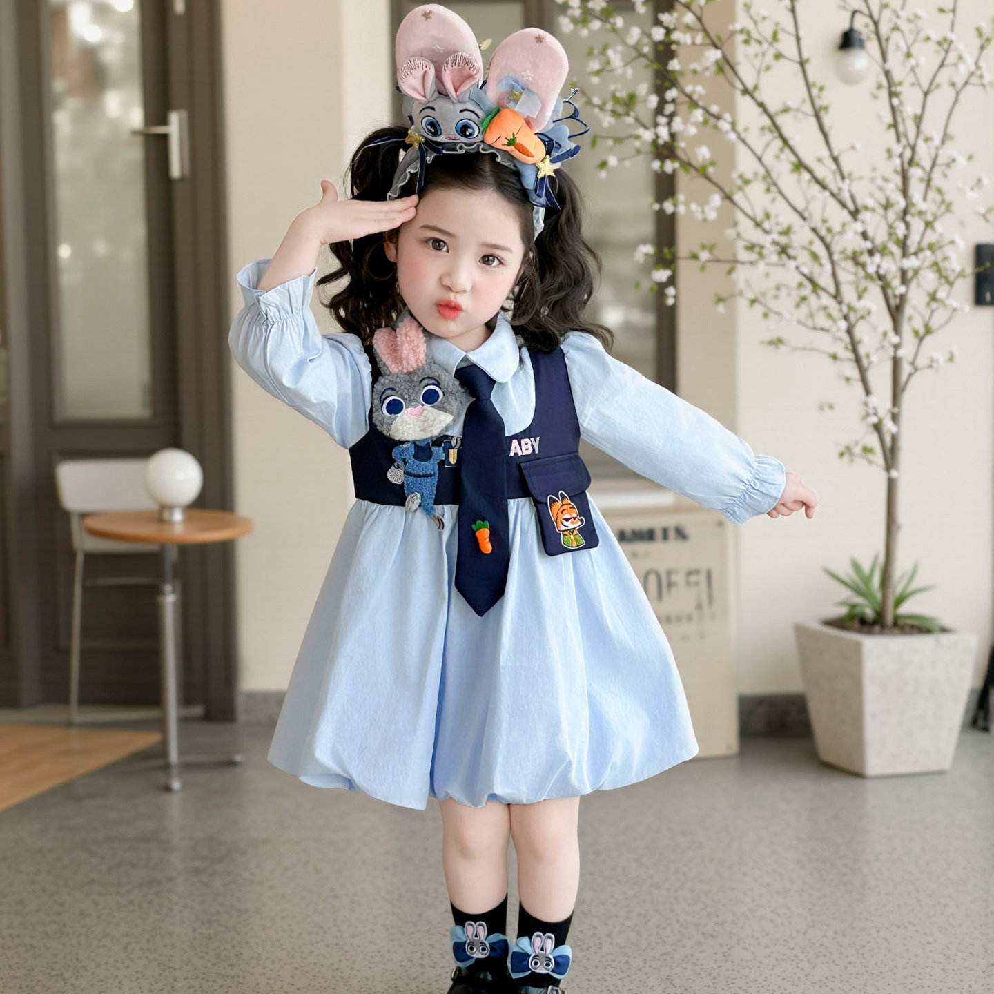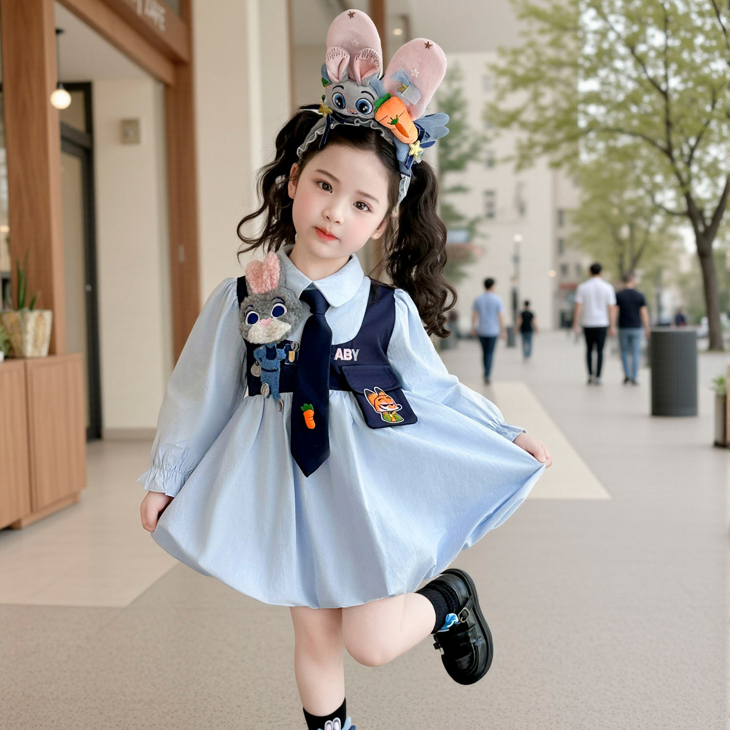 女童连衣裙春季2026新款儿童朱迪兔子警官裙子女宝花荷包公主裙子
