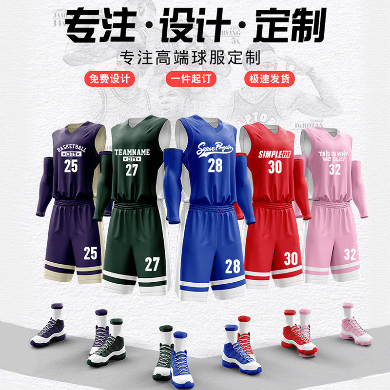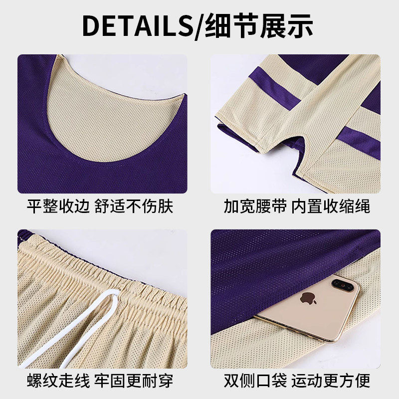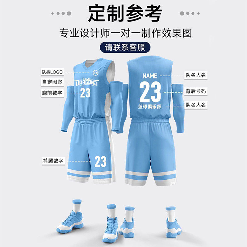 双面穿篮球服套装男球队定制比赛蓝白团队球衣儿童男童队服小学生