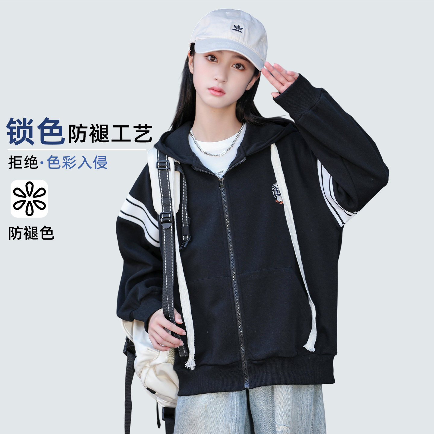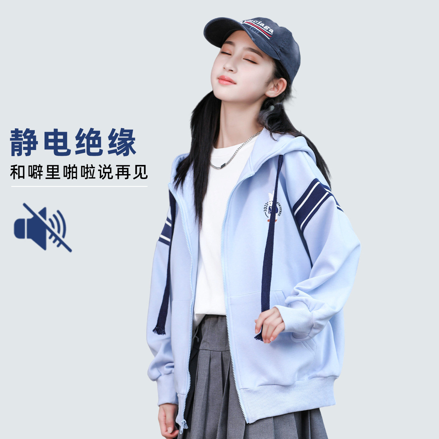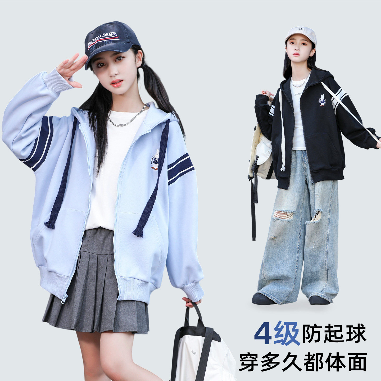 女大童薄款外套秋款女童卫衣连帽衫2025新款女孩学院风上衣独特