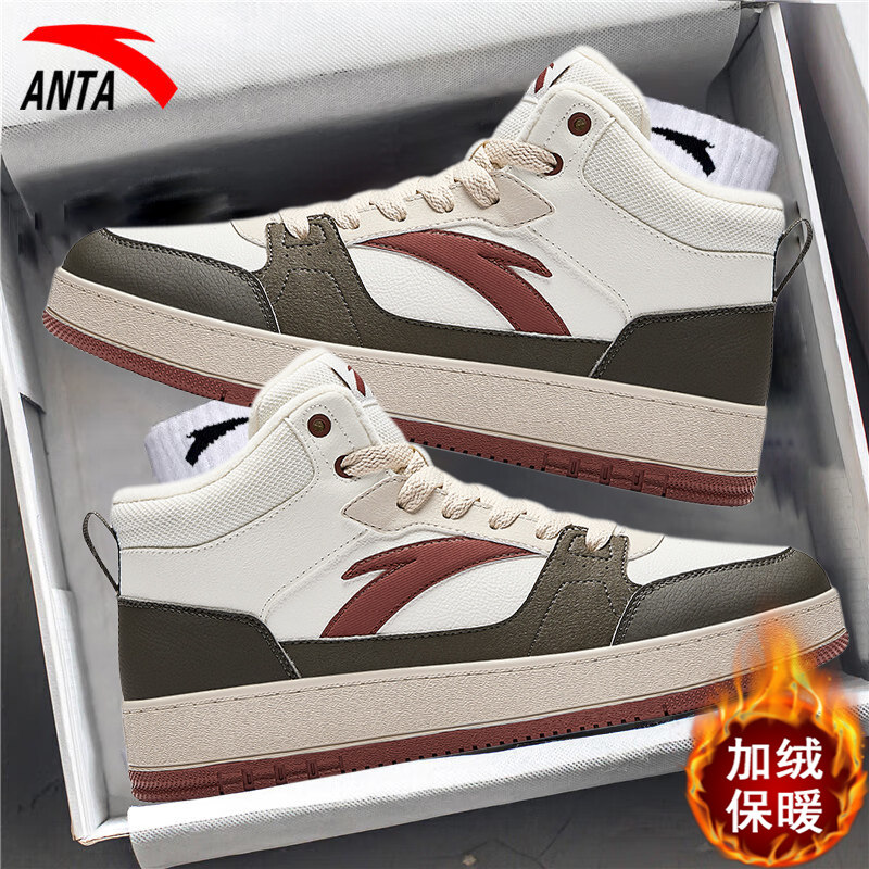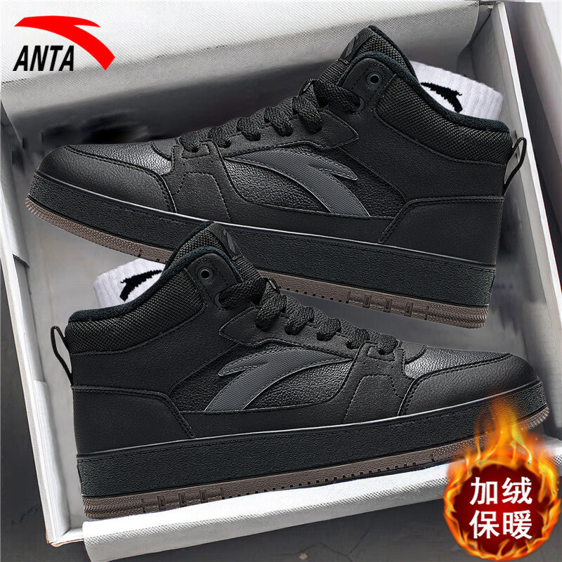 安踏男鞋加绒高帮板鞋皮面秋冬季2026新款男士休闲鞋高邦运动鞋子