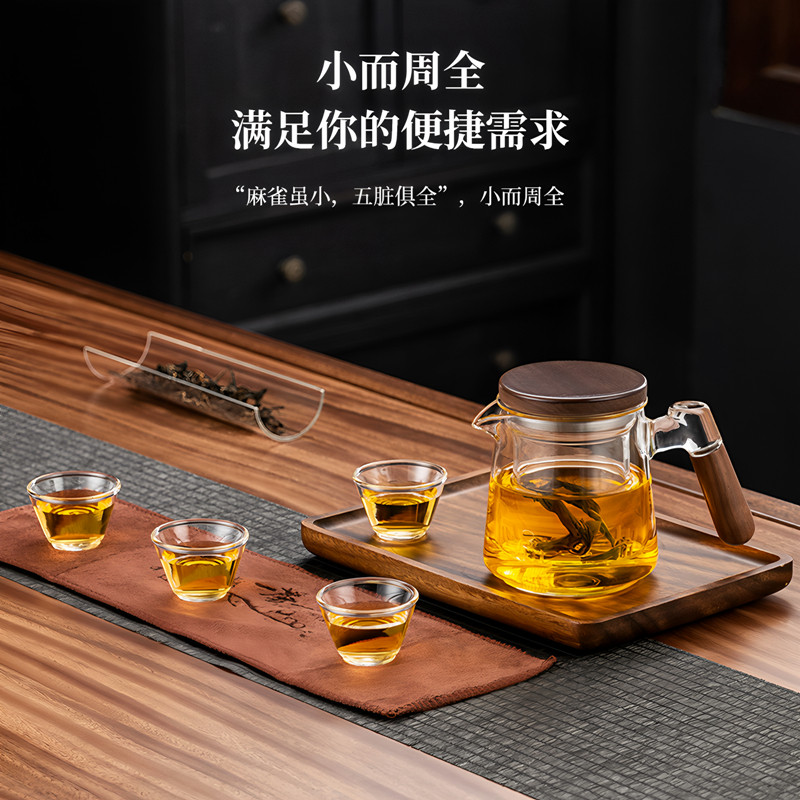 旅行茶具套装便携式玻璃泡煮茶壶户外露营快客杯小型电陶炉煮茶器