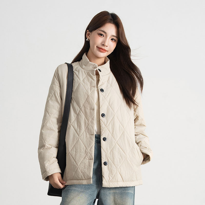 热风女士日系复古气质轻薄夹棉保暖棉服秋冬女款休闲巴恩风外套